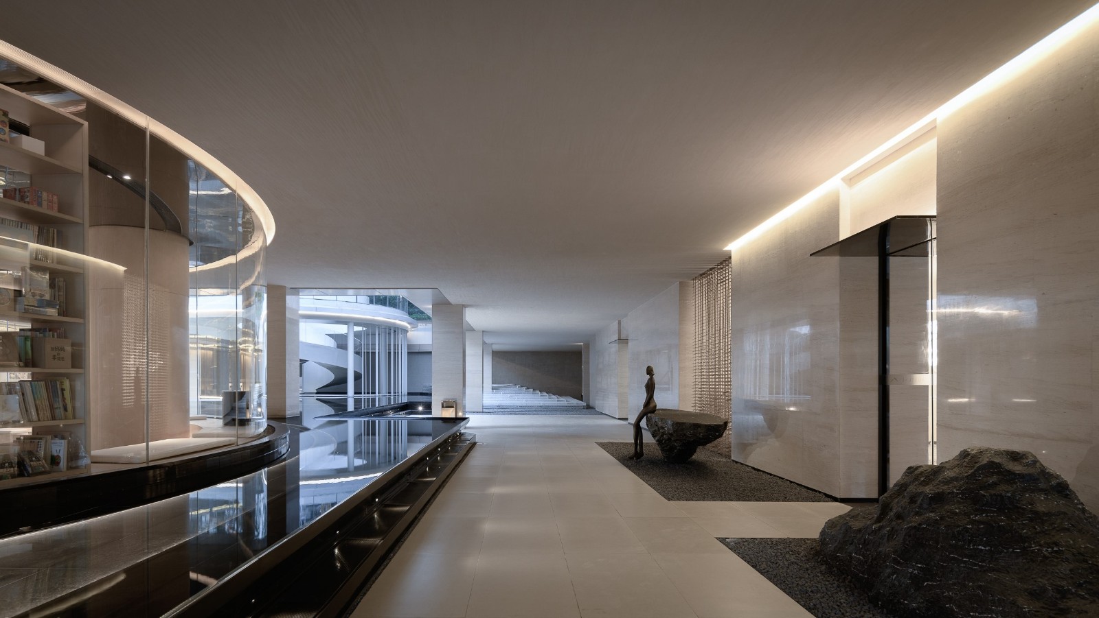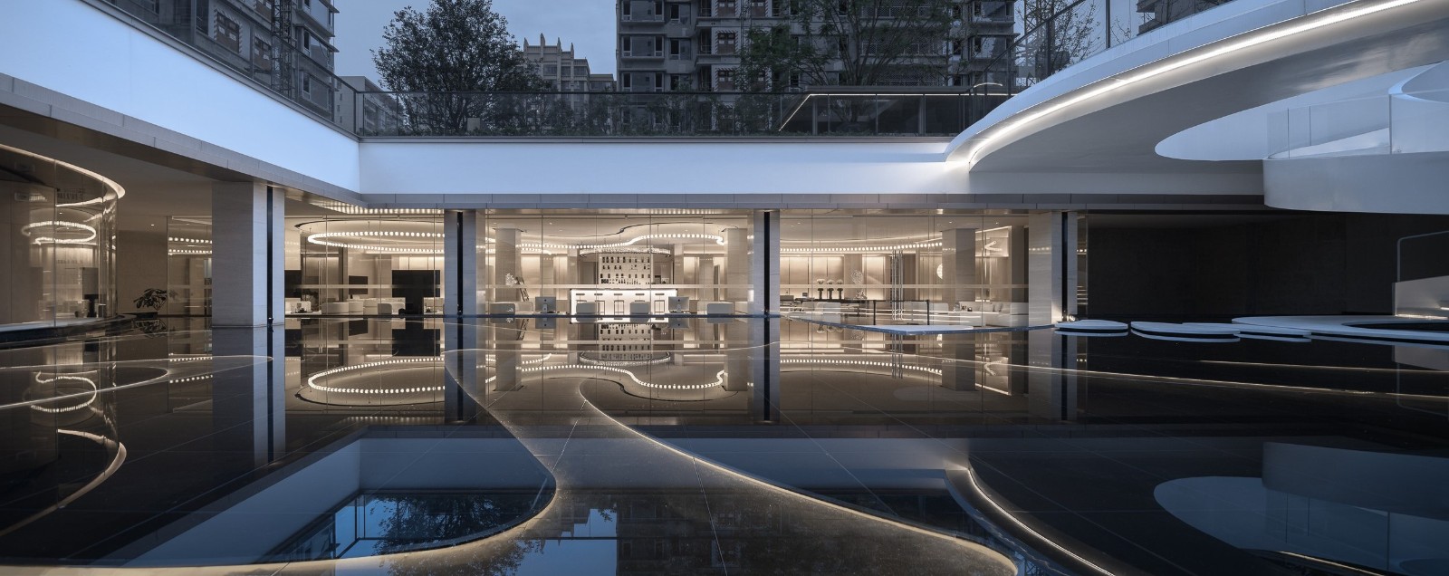 The first floor of Zhonghai Huan Yunju is all overhead, creating a private club integrating aesthetic experience / family leisure / social interaction. The interior decorative texture carved with the concept of jewelry design exudes delicate aesthetic light.
