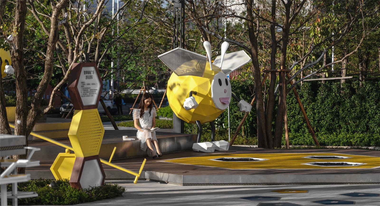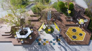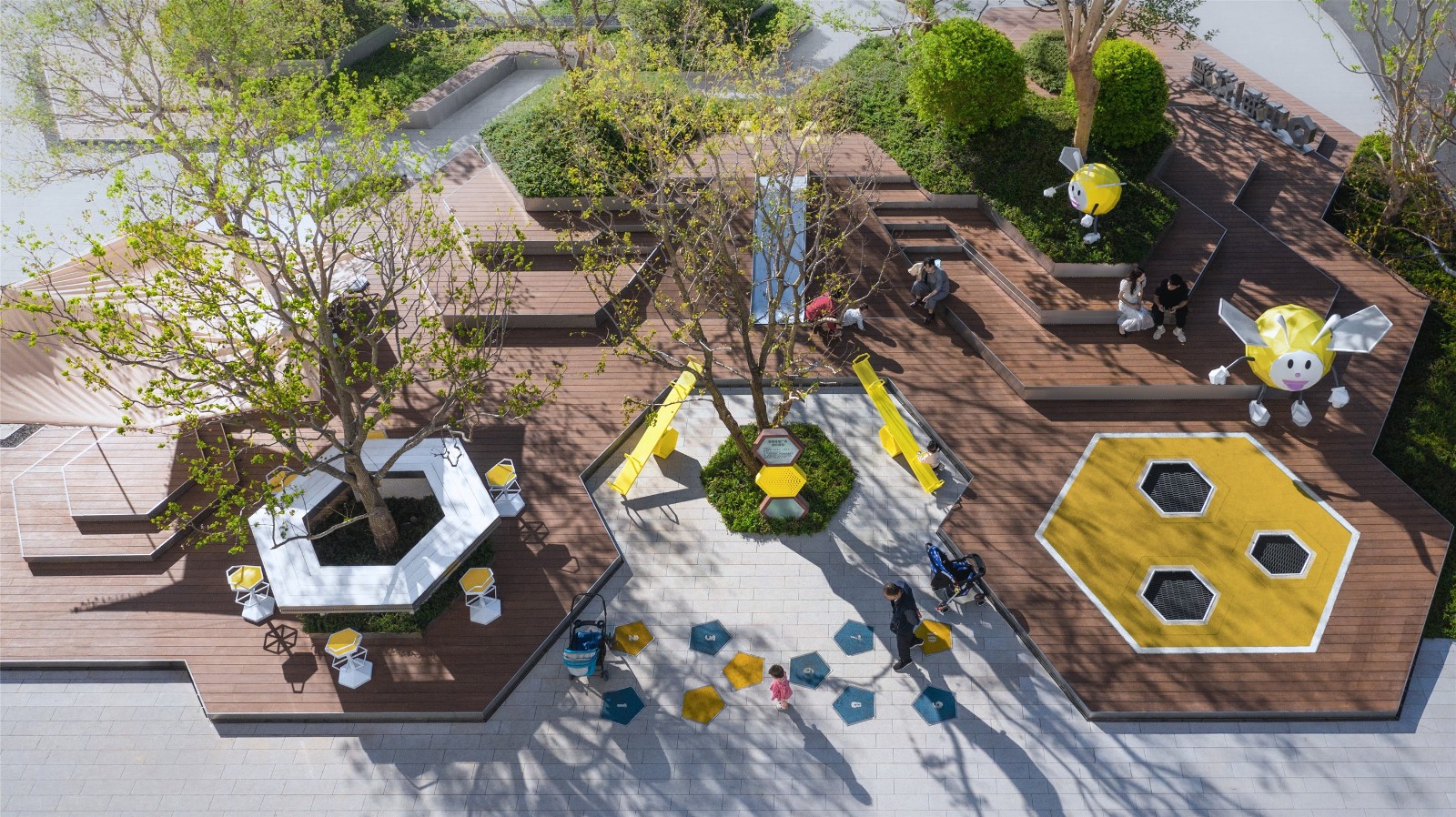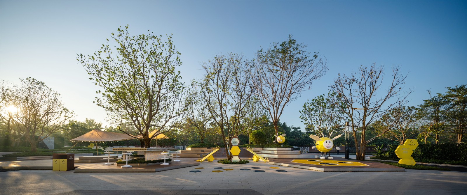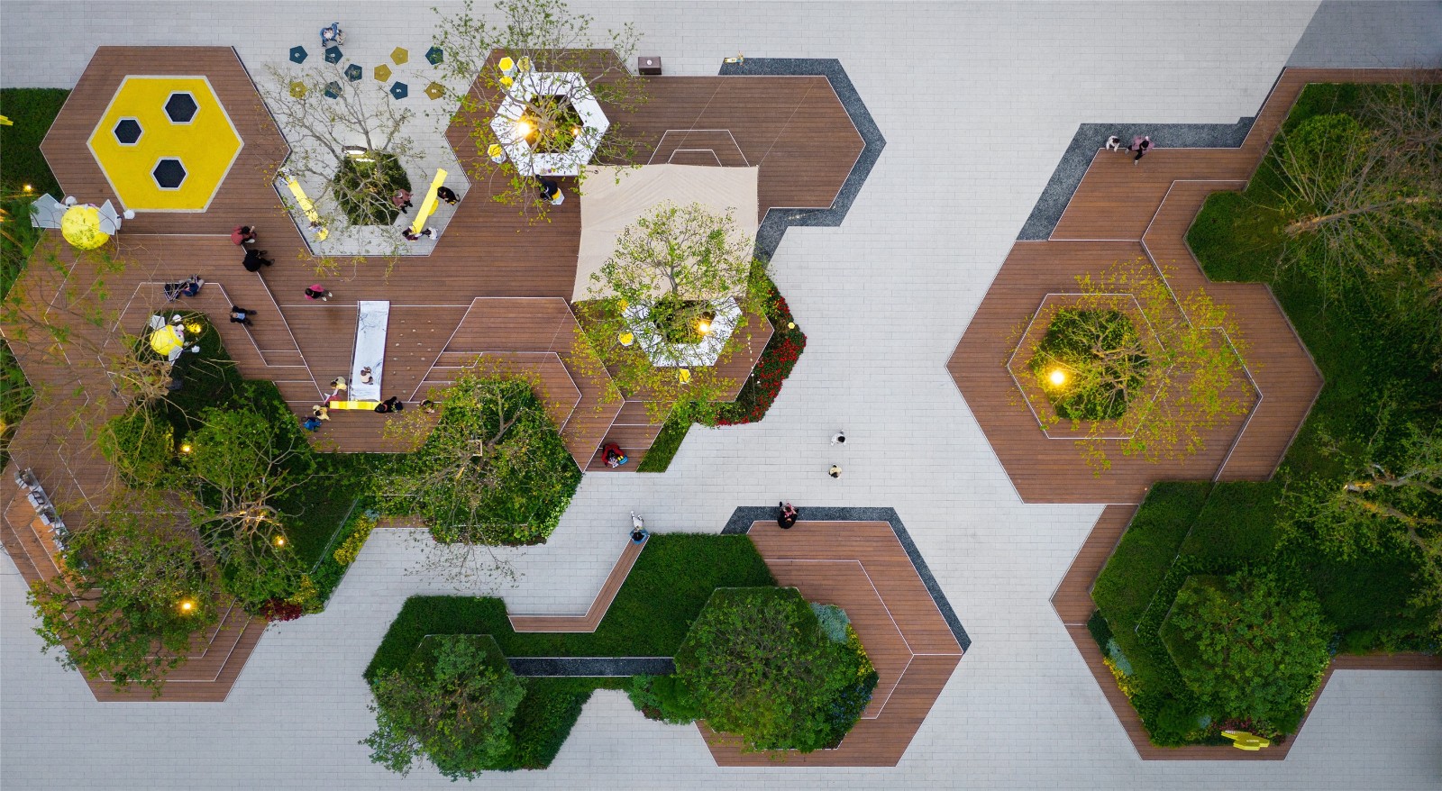 This project is the transformation of China Overseas original demonstration zone,Through the analysis of urban culture, customer group, architectural characteristics, function and space composition,Upgrade the landscape of the plot, activate the potential charm of the plot, and improve the green ecological environment of the city.To build itself into an urban leisure "street park" highly matched with the surrounding customers.Bionic fold change, "nest" flow front line,The overall design is with "fission and sublimation" as the theme, through the reorganization and evolution of the honeycomb module.It has created an immersive "punk health hall" inside and outside the architectural landscape.The completed park will also be provided free for surrounding residents.The original demonstration area will be upgraded to be in line with the new project customer group positioning.At the same time, urban leisure street parks are open for old project customers.
