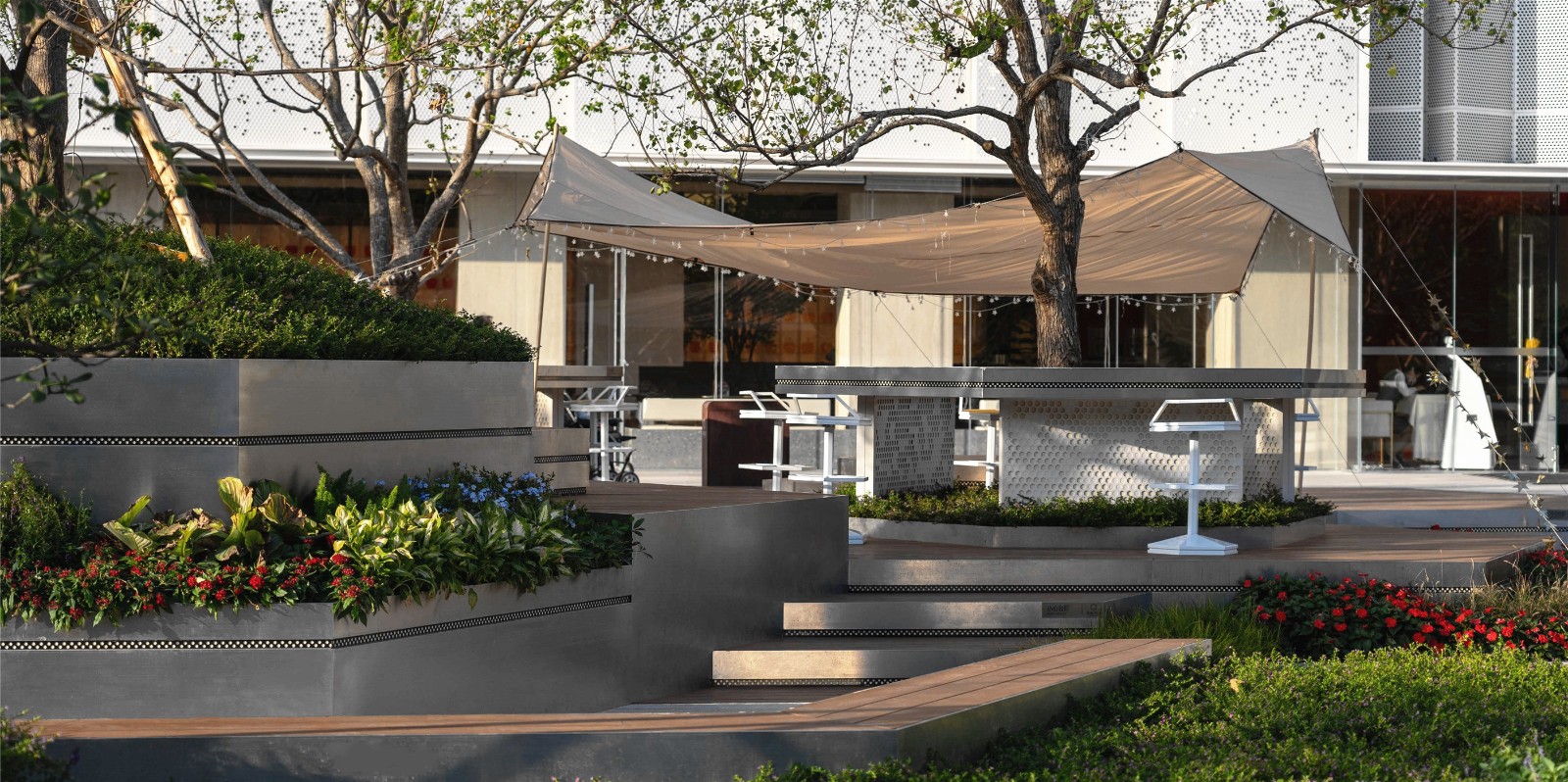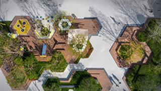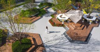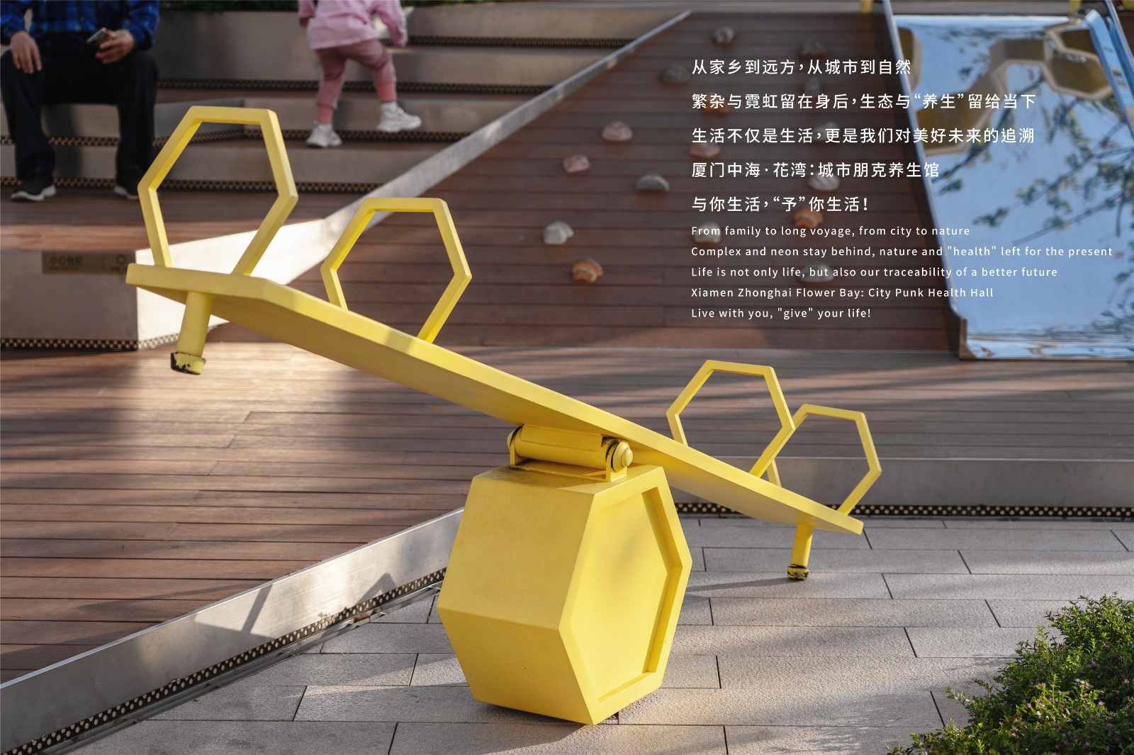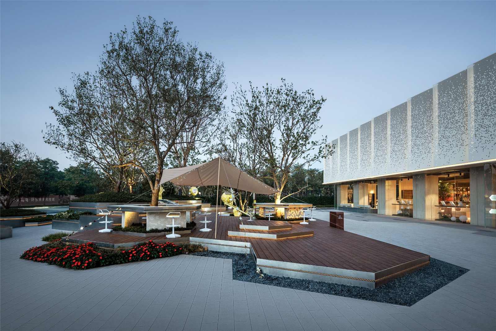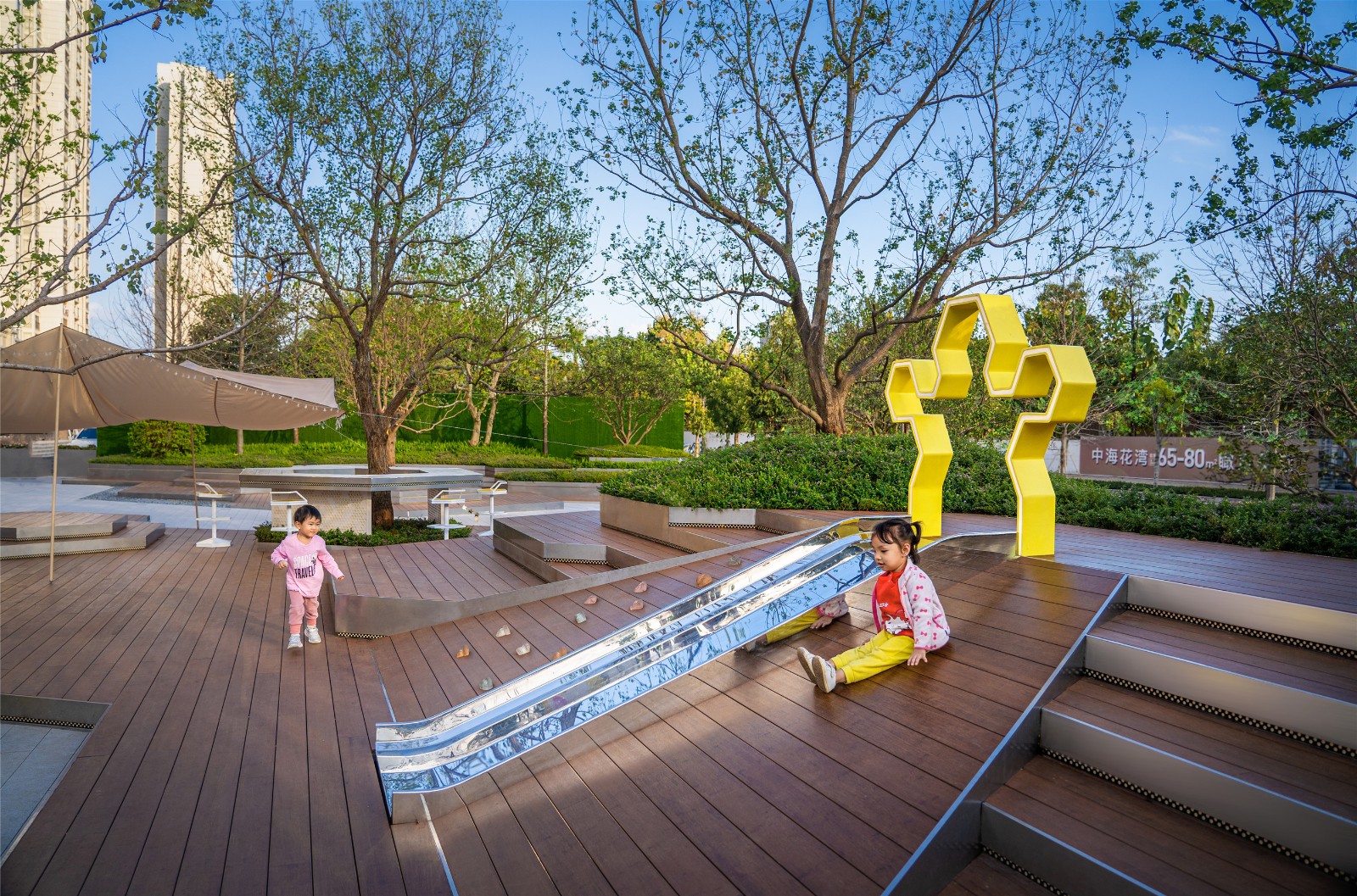 This project is the transformation of China Overseas original demonstration zone,Through the analysis of urban culture, customer group, architectural characteristics, function and space composition,Upgrade the landscape of the plot, activate the potential charm of the plot, and improve the green ecological environment of the city.To build itself into an urban leisure "street park" highly matched with the surrounding customers.Bionic fold change, "nest" flow front line,The overall design is with "fission and sublimation" as the theme, through the reorganization and evolution of the honeycomb module.It has created an immersive "punk health hall" inside and outside the architectural landscape.The completed park will also be provided free for surrounding residents.The original demonstration area will be upgraded to be in line with the new project customer group positioning.At the same time, urban leisure street parks are open for old project customers.