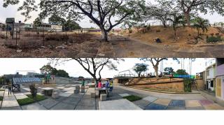 ▼項(xiàng)目施工前后對(duì)比——從閑置空地變?yōu)樾蓍e社交區(qū)