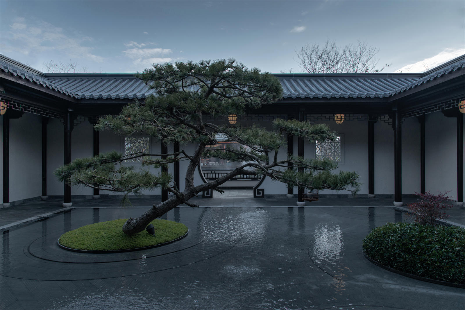 正方合院納意光、風、雨、雪等自然元素,四面圍合財源風水‘雨水流入天井,屋檐“灑金流銀”孕育石板歲月。一圍一合之間,一庭一堂之內(nèi);立于文化上,居于詩性中;藏千秋萬象,營四水歸堂。