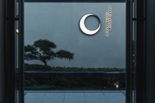 竹影婆娑,掩映一處月洞門,洞中則是另一方天地。月門婉轉,對景九州畫卷壁,雕呈現(xiàn)出一片海清河晏祥和之景。白墻綠竹,一步一景,曲徑通幽,自然渾成,框景成畫。一幅幽靜、雅致的山水畫面隨著觀者視角慢慢舒展,時隱時現(xiàn),予人無限的遐想。