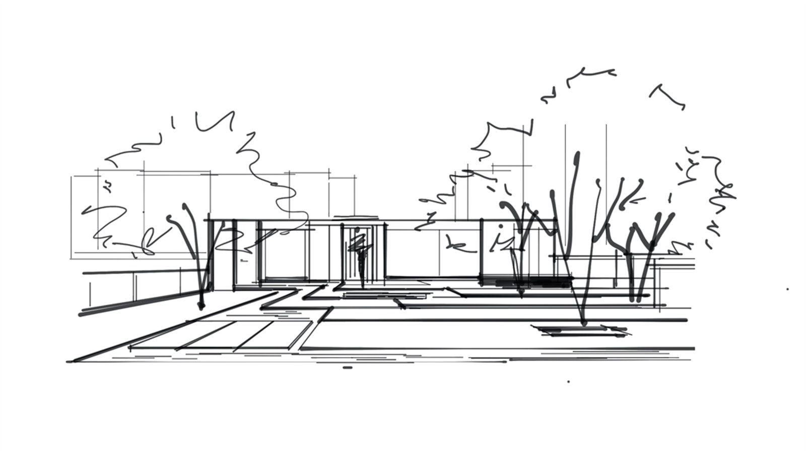 后場(chǎng)為中心景觀會(huì)客廳,通過人行入口進(jìn)入后豁然開朗,通廊將休憩與通行入口整合作為背景,形成全畫幅景象,美好盡收眼底。去除繁瑣的裝飾,展現(xiàn)簡(jiǎn)潔大氣現(xiàn)代的邏輯之美。