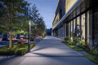 夜景燈光運(yùn)用舒適的色溫,隱藏的線性燈光勾勒整體氛圍,如同指引人們歸家的燈塔。路途中注重植物層次感搭配及視線觀感:錯(cuò)落有致的道路,恰到好處的燈光,每一個(gè)落腳點(diǎn)都有小景可看,處處是驚喜。在空間布局上,兩側(cè)道路給人厚重穩(wěn)固的安全感,開敞的水景給人心曠神怡的通透感,景觀尺度的對(duì)比令空間收放有致,富有節(jié)奏。