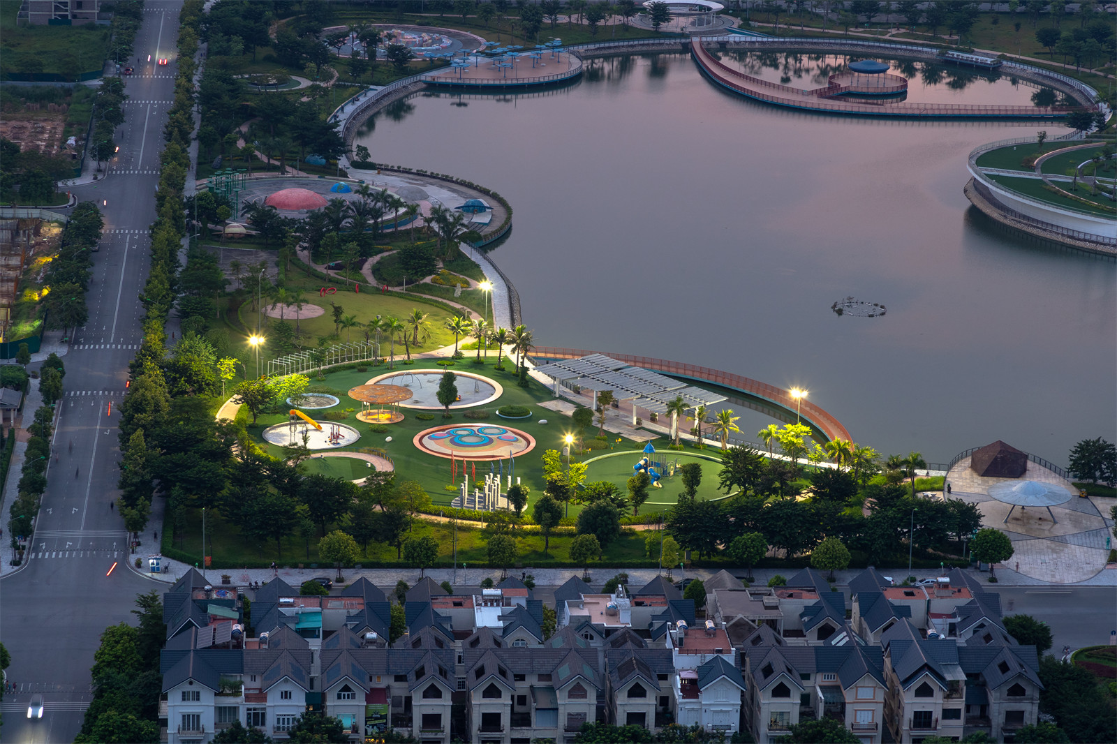 It is interesting that all trees in the park are planted in rows in the direction of the sun with an angle of 45 degrees relative to the master plan. In the next phase, phase 2, a series of items will be built including a museum, a black hole swimming pool on the lake and a telescope system to observe the sky.