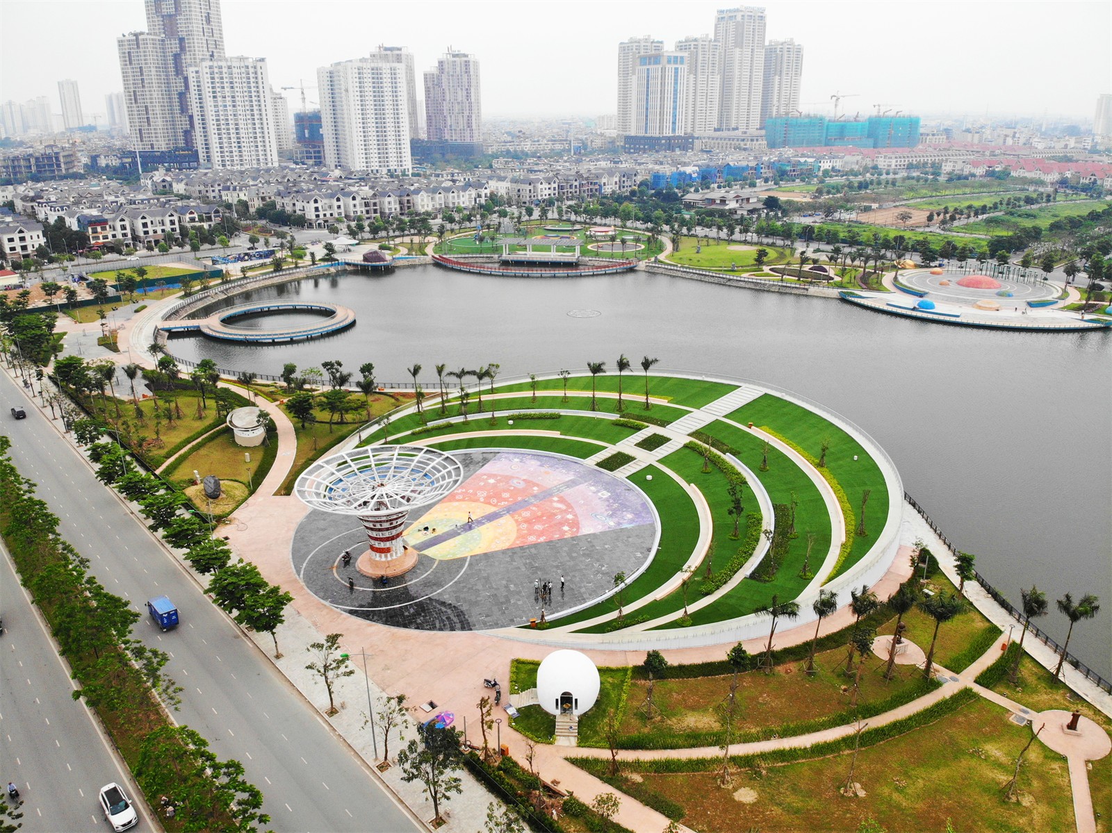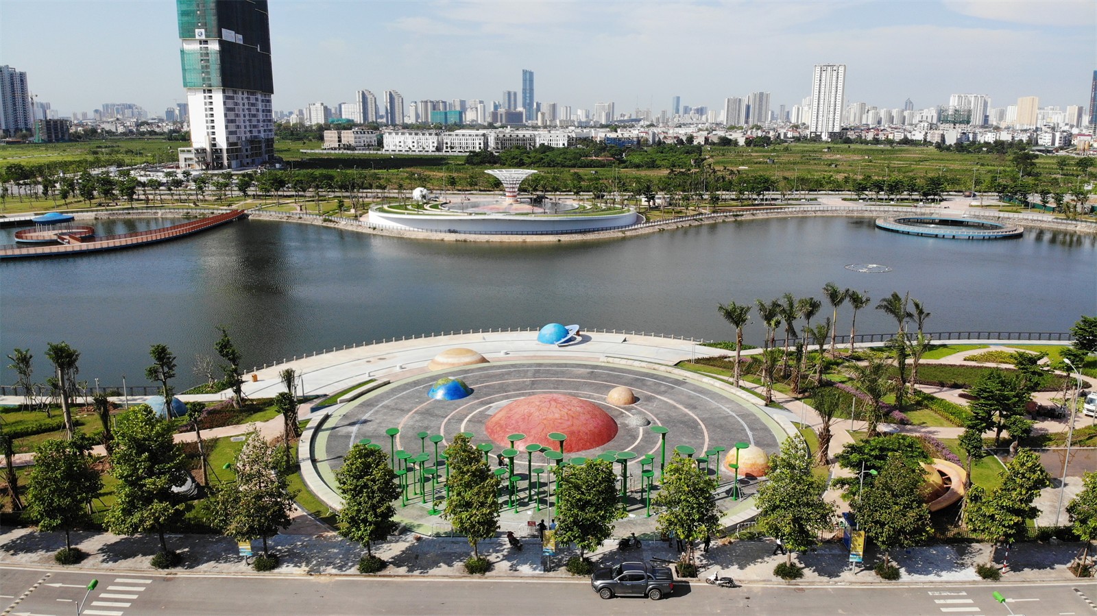 Astronomy Park is a public park project in Hanoi. The project is located in a new development area in the West of the city and is Vietnam’s first astronomy park. Construction project surrounds Bach Hop Thuy lake, an abandoned detention basin of Duong Noi urban area. This project is a boost to the real estate while also significantly improving the quality of life and public space in the new district of Hanoi. The park area is 120000m2, of which 6000m2 is the water surface area.