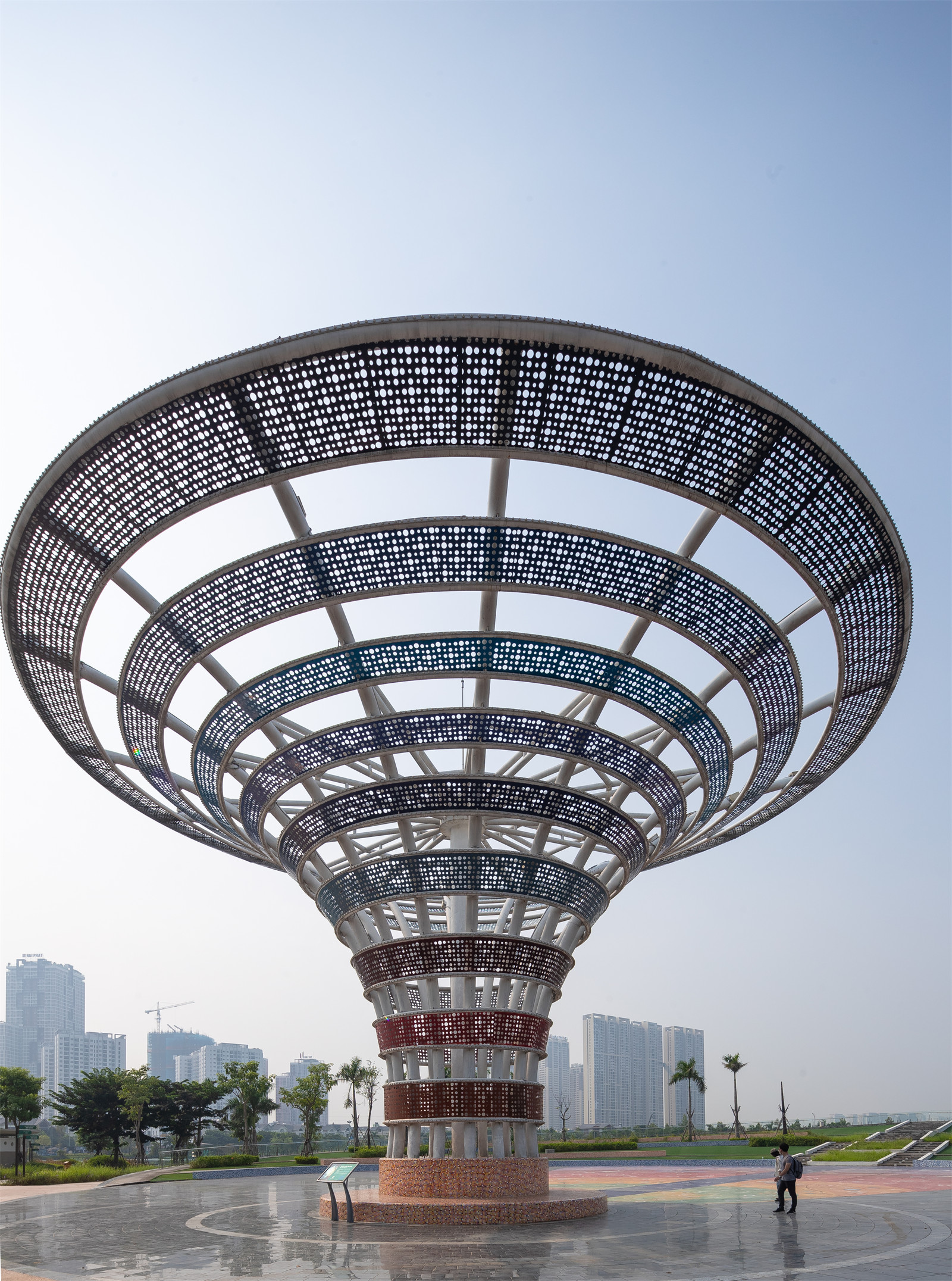 The Big Bang tower is surrounded with famous local ceramic tiles Bat Trang.