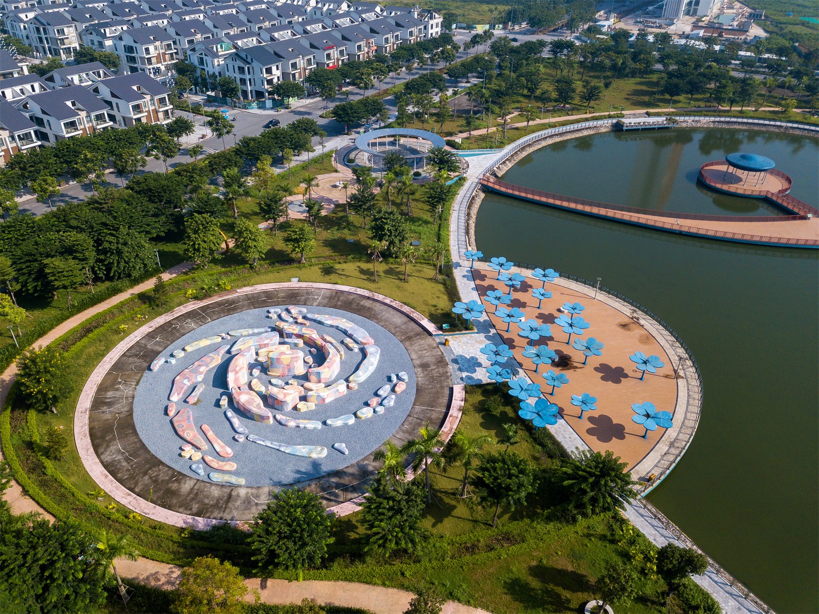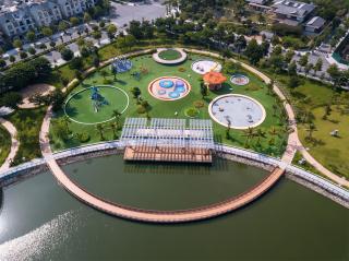 The end of the journey is the Black Hole pit. The Black Hole Pool is located on the surface of the lake to form a round crater, surrounded by floating floors and also a marina. This is the venue for fun activities with water in the park. Combined with playgrounds, gyms, exercise machines, outdoor equipment and adjacent auxiliary areas, the Black Hole Pool will be an ideal space for residents to improve their health and physical activity.