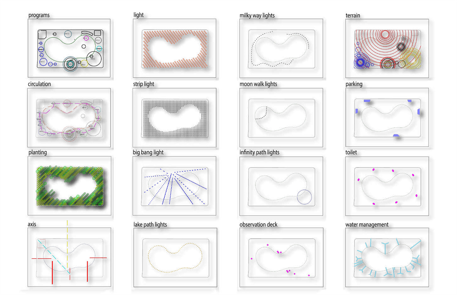 有趣的一點(diǎn)是,公園內(nèi)所有的樹(shù)木都是沿太陽(yáng)升落路徑呈東西走向排列種植的,相對(duì)于總平面呈45度夾角。在下一階段的二期項(xiàng)目中,即將建造更多的設(shè)施,其中包括博物館、位于湖中的黑洞游泳池和觀測(cè)天空的望遠(yuǎn)鏡系統(tǒng)。