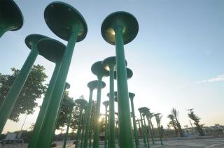 外星人廣場(chǎng)模擬了太陽(yáng)系中行星的軌道。廣場(chǎng)中心放置了一座UFO,周?chē)型庑侨说裣袢?。有趣的外星人雕像?duì)每個(gè)人都很有吸引力,尤其是小孩子。緊挨著廣場(chǎng)的是運(yùn)動(dòng)場(chǎng)和健身器械區(qū),將在二期項(xiàng)目中擴(kuò)建。