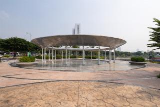 The journey to explore the universe at the Astronomical Park is connected seamlessly from the beginning to the end by the 2 closed routes, the outer route is the Milky Way. Milky Way is a walking path in the park inspired by the Milky Way (also known as the Milky Way) winding in the sky. On that path there are decorative items that represents the constellations in the Milky Way. Different lighting effects and colors provide a dramatic atmosphere for the park at night. The park has 4 entrances corresponding to 4 squares, those are Big Bang Square, Zodiac Square, Solar System Square and Alien Square. The inner route is a lakeside promenade, which is more of peaceful, a walking route where pedestrians can approach the water closer through the piers, the deck encroach to the lake.