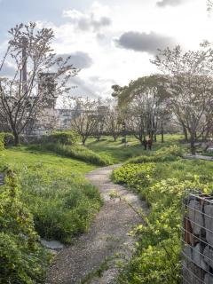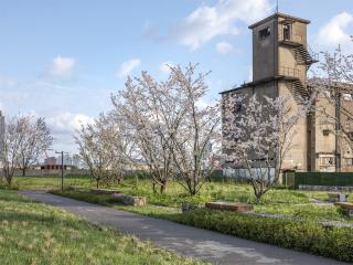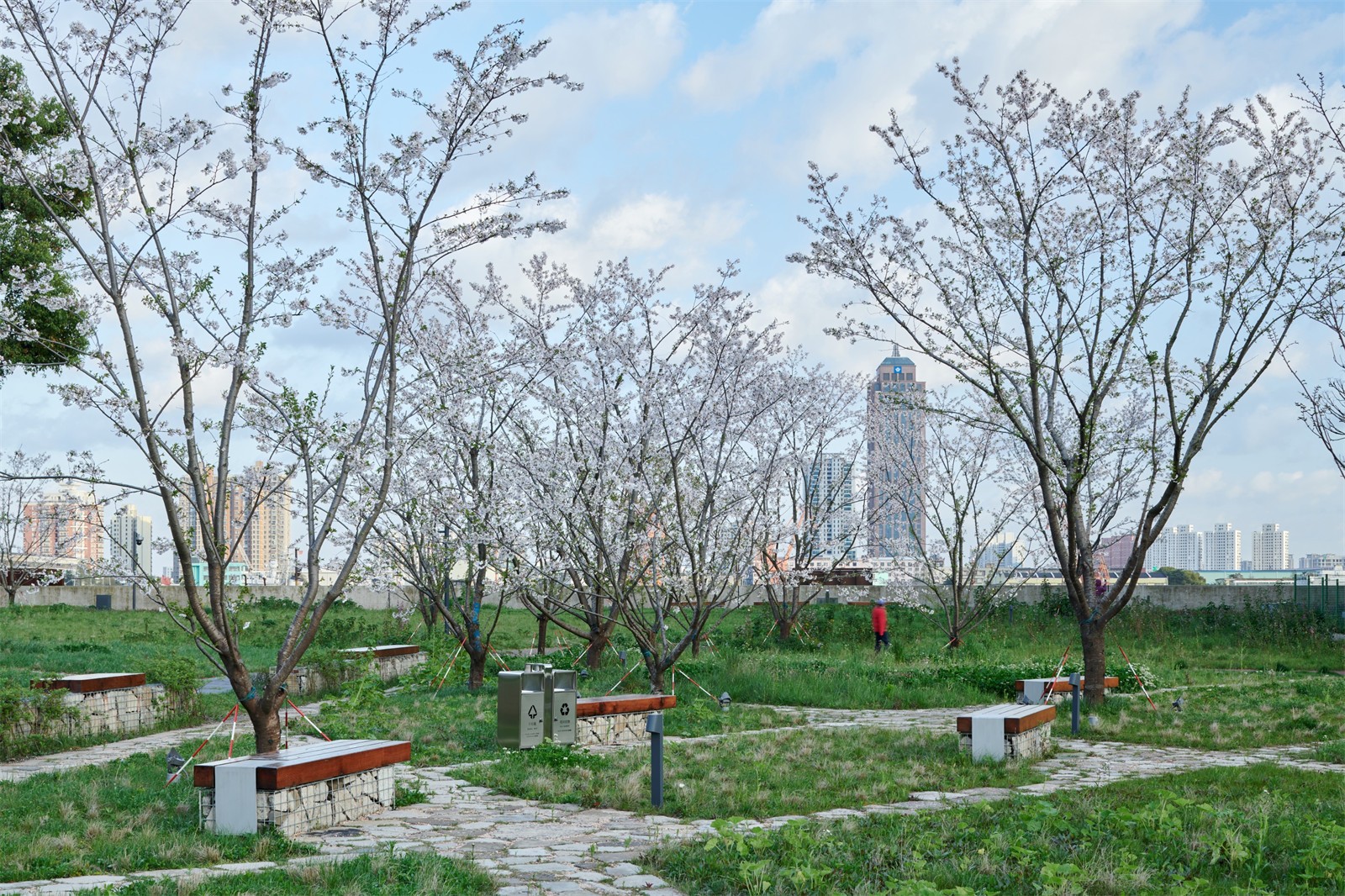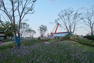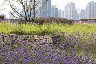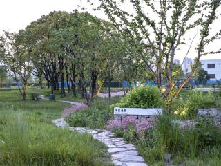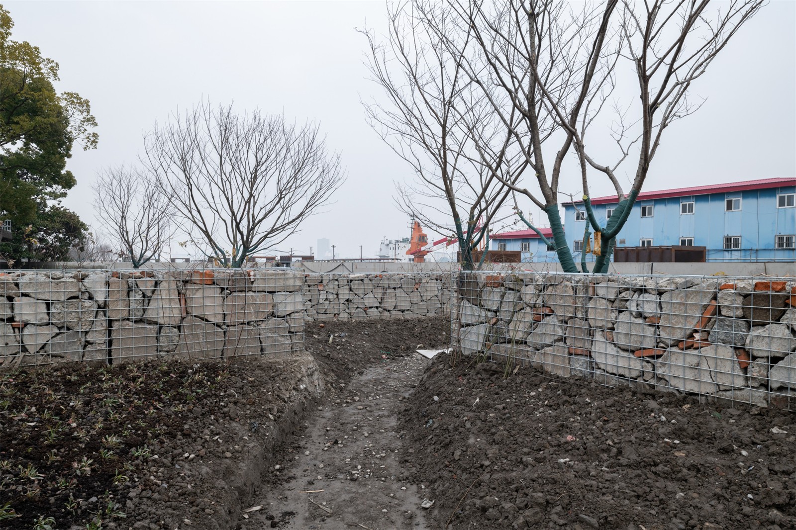 Walls made of concrete blocks contained within the gabion baskets are built on the former site of canal and factory buildings to represent the original factory building relics. The man-made meadow also encourages visitors to observe the growth and decay of vegetation and to experience the four seasons of Shanghai.