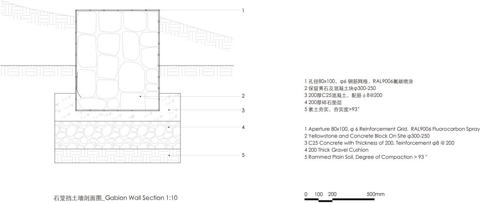 The gabion baskets functioning as retaining walls integrates with the nature well. ? Tian Fangfang