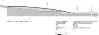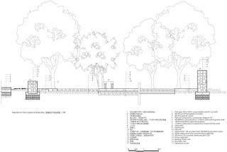 主要景觀材料: 透水瀝青混凝土、風(fēng)化花崗巖、現(xiàn)場混凝土砌塊、黃石、鋼板氟碳噴涂