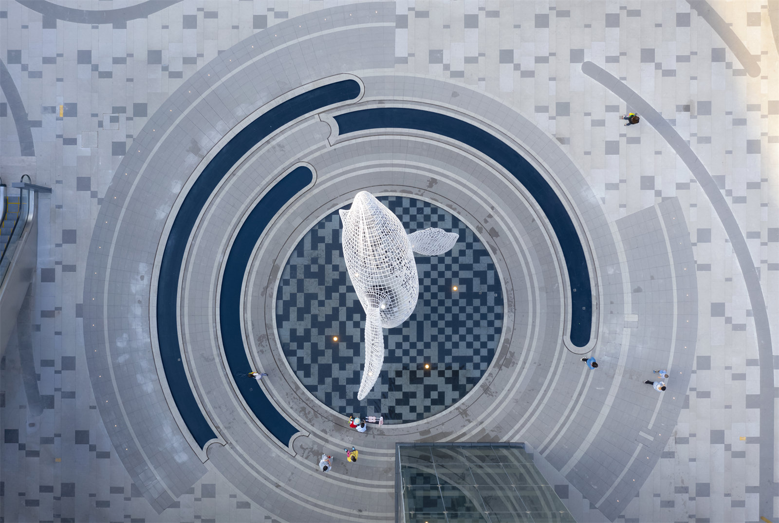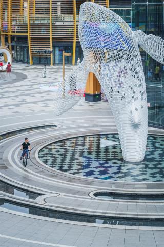 The Will Whale sculpture combined with water features and special pavement ?日野攝影
