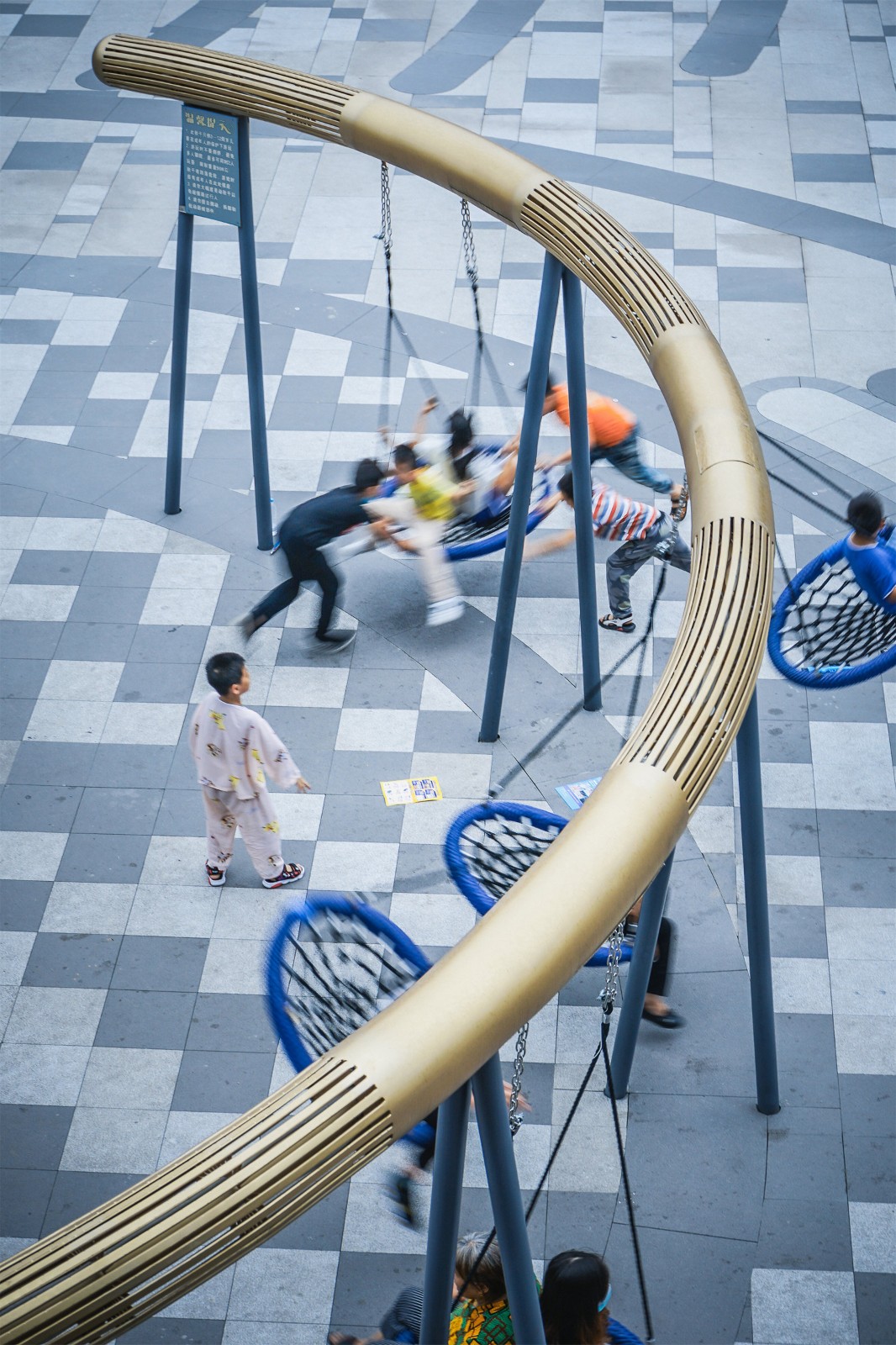 海洋之森廣場分為三個板塊,分別為水母秋千游戲圈,旱噴泉廣場,鯨魚游戲圈廣場。
