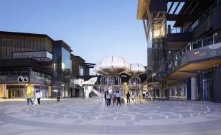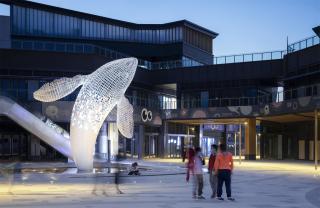 As a focal central event stage, we designed the Will Whale sculpture combined with water features and special pavement to activate the entire commercial inner street space.