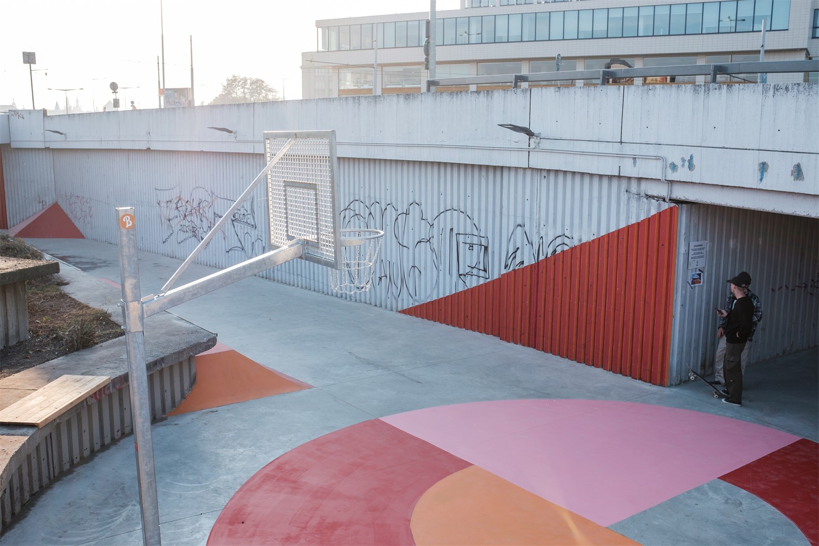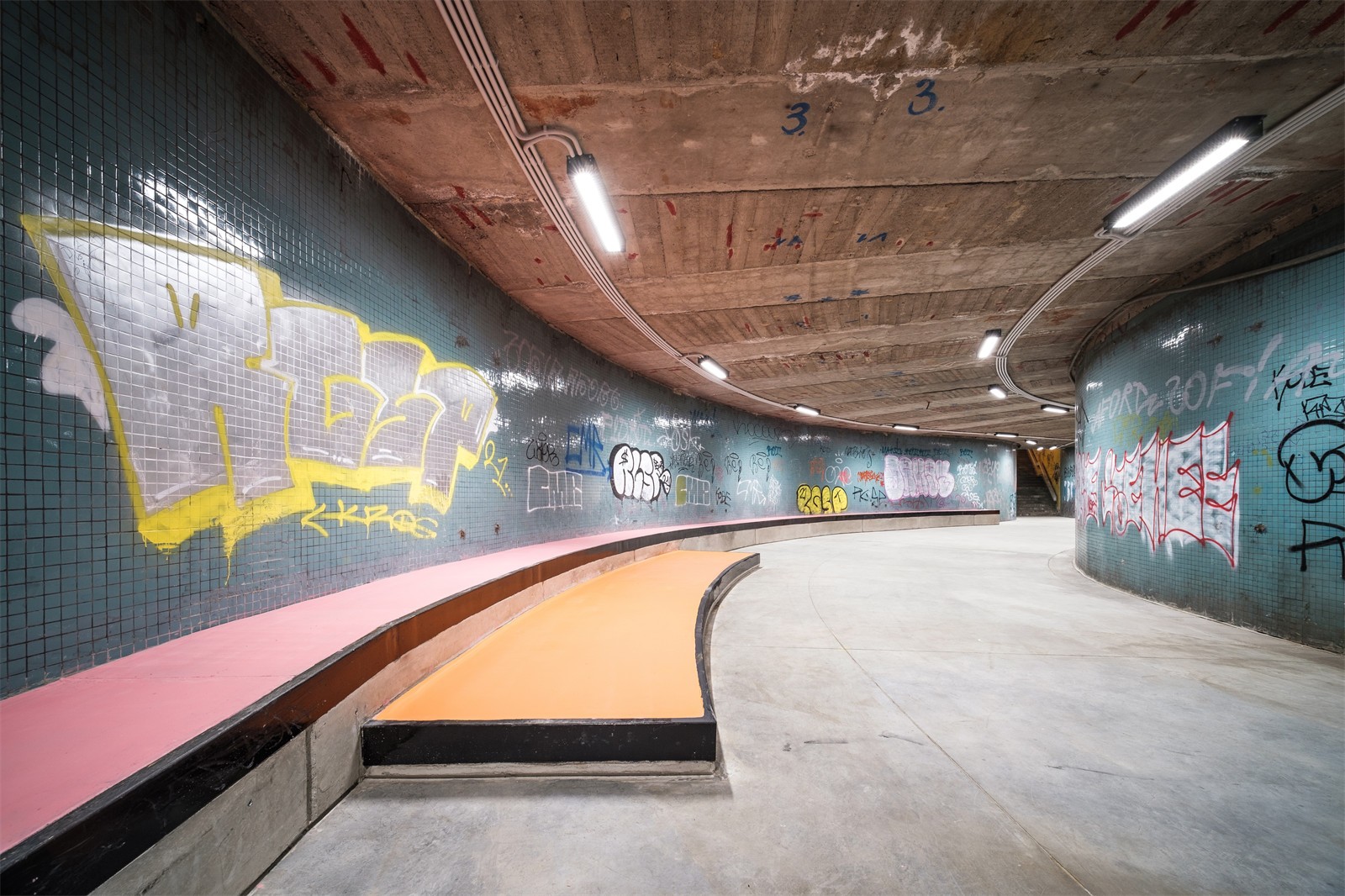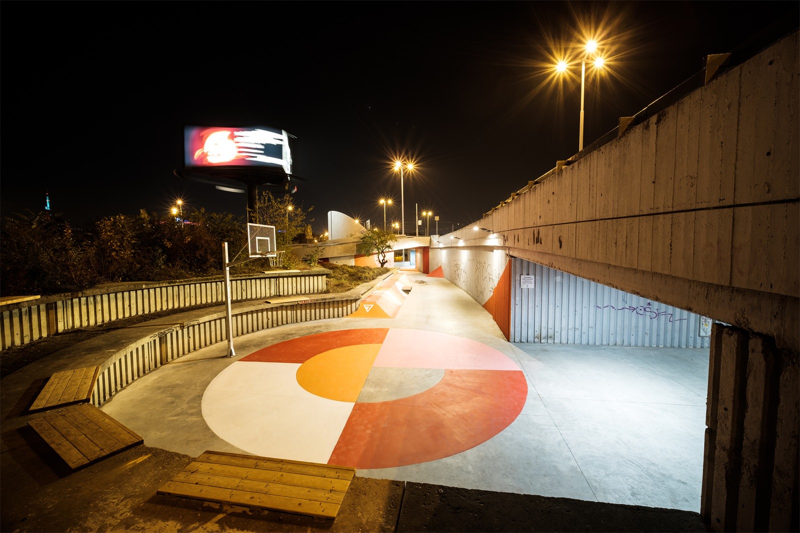 It was a pair of local patriots Richard Preisler and Martin Kontra who were requested by Prague 7 to come up with a concrete solution. For this purpose, they invited architects from U / U Studio to help. “The result is a project of a multifunctional sports and social centre. Underpasses are now enlivened by sports elements for skateboarding and BMX, basketball hoops or bouldering grips. However, the space offers a friendly environment for everyone; parents with children and other inhabitants or any passers-by. It is particularly this multifunctionality thanks to which the place will be alive, friendly and safe. At the same time, the change will certainly be appreciated by pedestrians, who will no longer have to walk through a dark, neglected underpass. The experience of the first days after the completion of the construction suggests that the plan has been successful,” say Kontra and Preisler.
