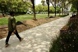 The petal shape platforms on the landforms are perfect viewing spots in the park, as well as performance stages for musicians on the weekend.