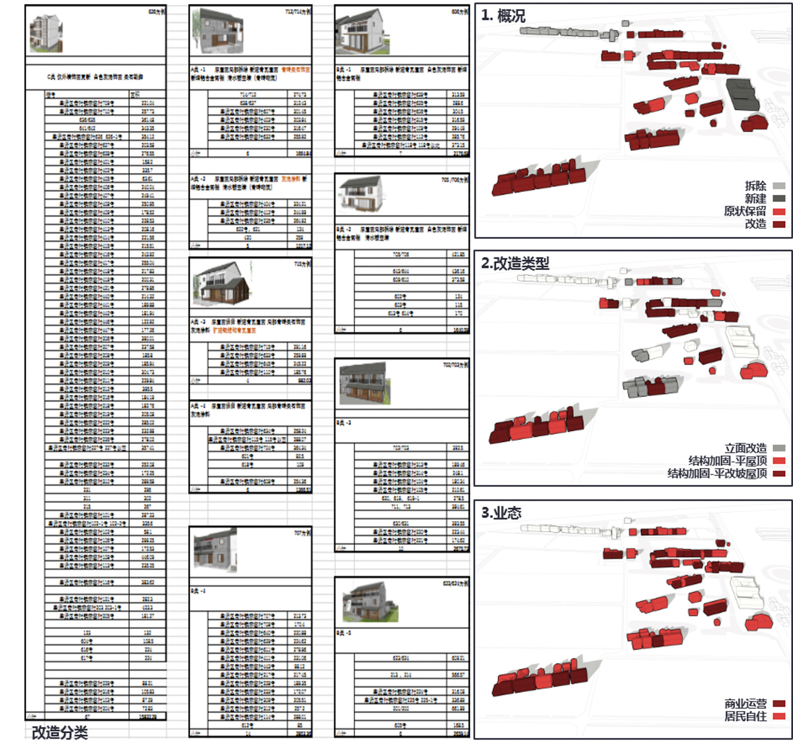 我們將現(xiàn)狀建筑進(jìn)行典型分類,并有針對(duì)性的研究幾種模型樣式,包括屋頂做法,披檐樣式,結(jié)構(gòu)加固、門窗形式,材料組合等等。同時(shí),造價(jià)計(jì)算也同步進(jìn)行,確保了每一種做法、樣式都是在單方造價(jià)內(nèi)可實(shí)施落地的,最后形成了一套基本的建筑模塊。