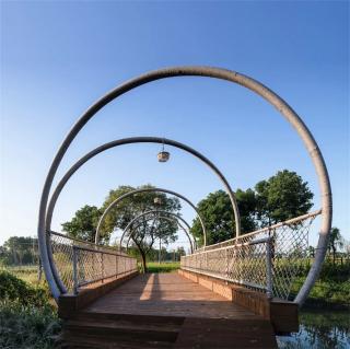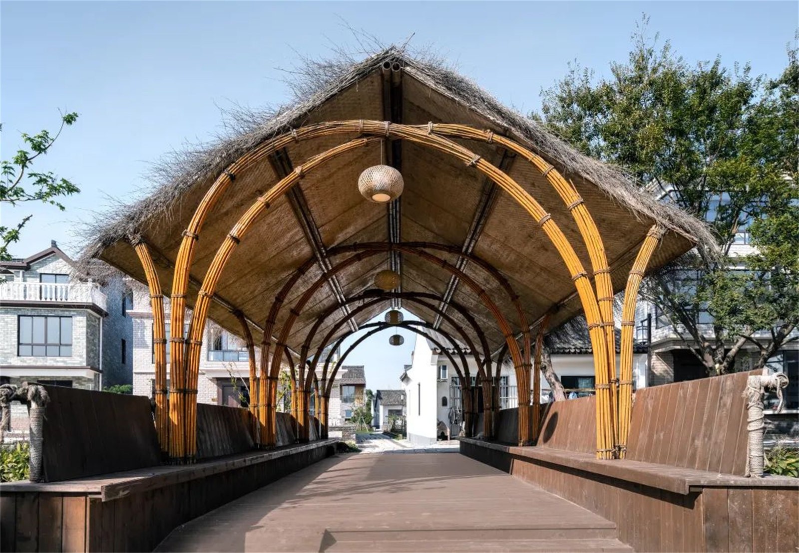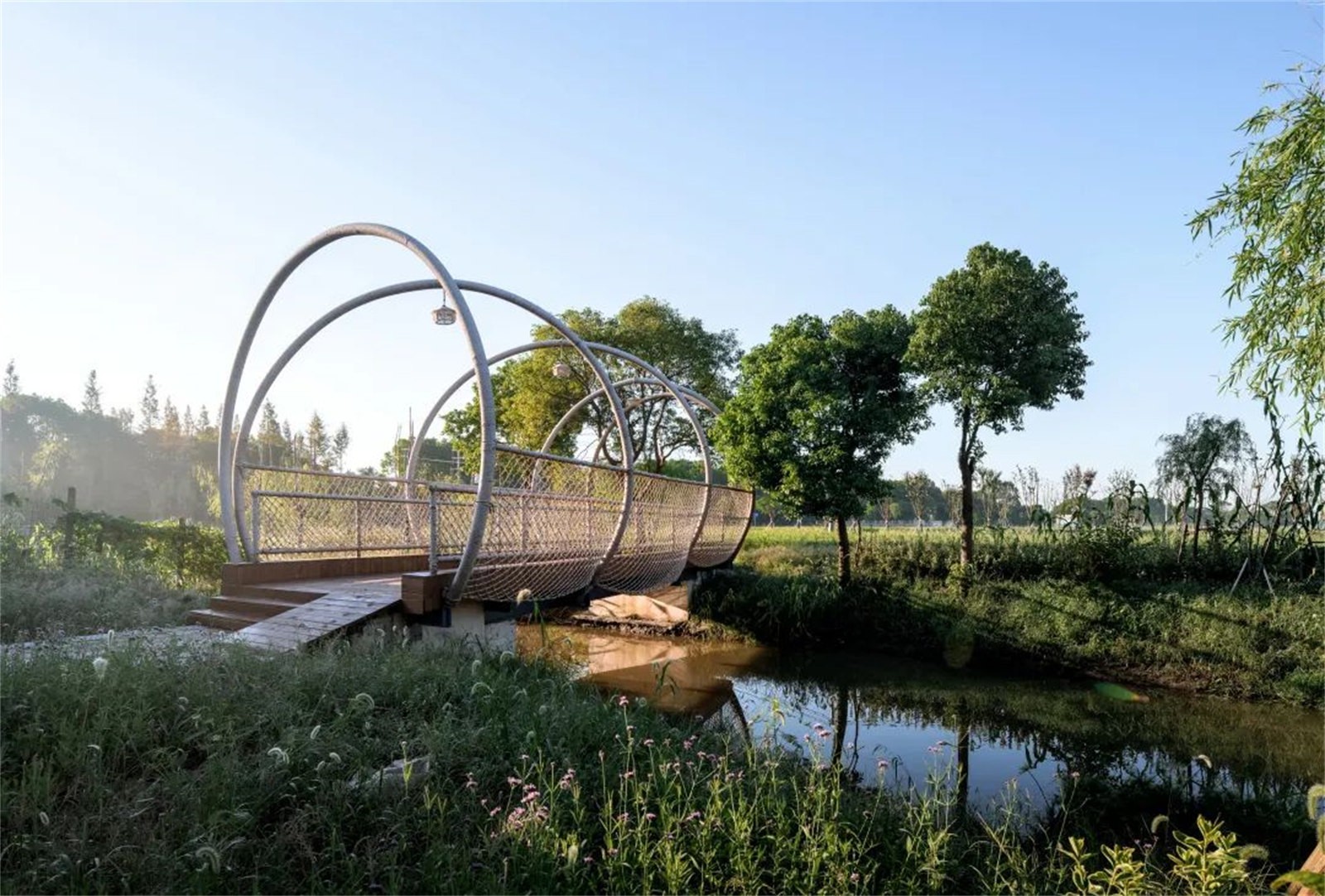 在整體的景觀方案上,我們通過因地制宜的設(shè)計(jì),回應(yīng)自然而然的傳統(tǒng)村落的肌理,通過對(duì)空間的重新梳理,對(duì)場(chǎng)景進(jìn)行了場(chǎng)所植入、柔化與過渡。在對(duì)現(xiàn)有的資源進(jìn)行規(guī)劃整合后,我們從河道、農(nóng)田、建筑場(chǎng)地出發(fā),重塑一個(gè)原生的、自然的“河+田+民宿”的鄉(xiāng)村景觀格局,將失去活力的空間通過“橋體”連接,同時(shí)依托產(chǎn)業(yè)類型而增加的配套服務(wù)點(diǎn)也為村民帶來了參與建設(shè)與運(yùn)營的機(jī)會(huì)。