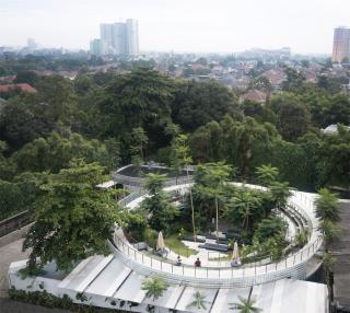 Started with the question, what if functional spaces and the very definition of building only acted as an envelope of an open garden. Design was to demonstrate a disappearing indoor space, hidden within a simple multi-leveled garden. Spaces that were created became a sequential space, and was not an initial space. At the heart of our project is the idea of playful togetherness. We want this to be a refreshing and dynamic new civic space that is sustainable – businesswise in developing country cities like Jakarta, where government-run public space is unreliable.