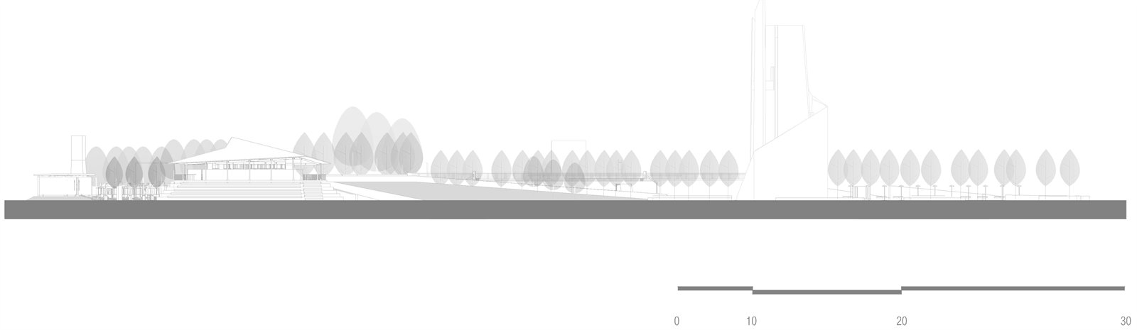 景觀塔被巧妙地安置在場地最東端,項(xiàng)目中幾乎所有設(shè)施與元素都朝向塔樓。設(shè)計(jì)的靈感來自于“patonro”,一種起源于南蘇拉威西島的當(dāng)?shù)仡^飾。除了以“patonro”為場地朝向的中心外,人們在場地內(nèi)的任何區(qū)域都能觀賞到塔的全貌,且場地內(nèi)的每個(gè)元素都能構(gòu)成塔的框景。為了達(dá)到這一目標(biāo),塔樓周圍的場地相比于其他部分更加平整。