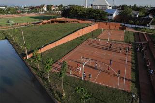 From a distribution stand point, the pre-existing facilities were not placed accordingly which scattered its users all over the site creating a security problem from low supervision. Because of this, the first step that we did was to redesign the distribution of zones. We also add a few additional sports facilities to form its zones. The previously scattered PKL (hawkers) are now centralized in the northern area to emphasize the division of the northern zones.