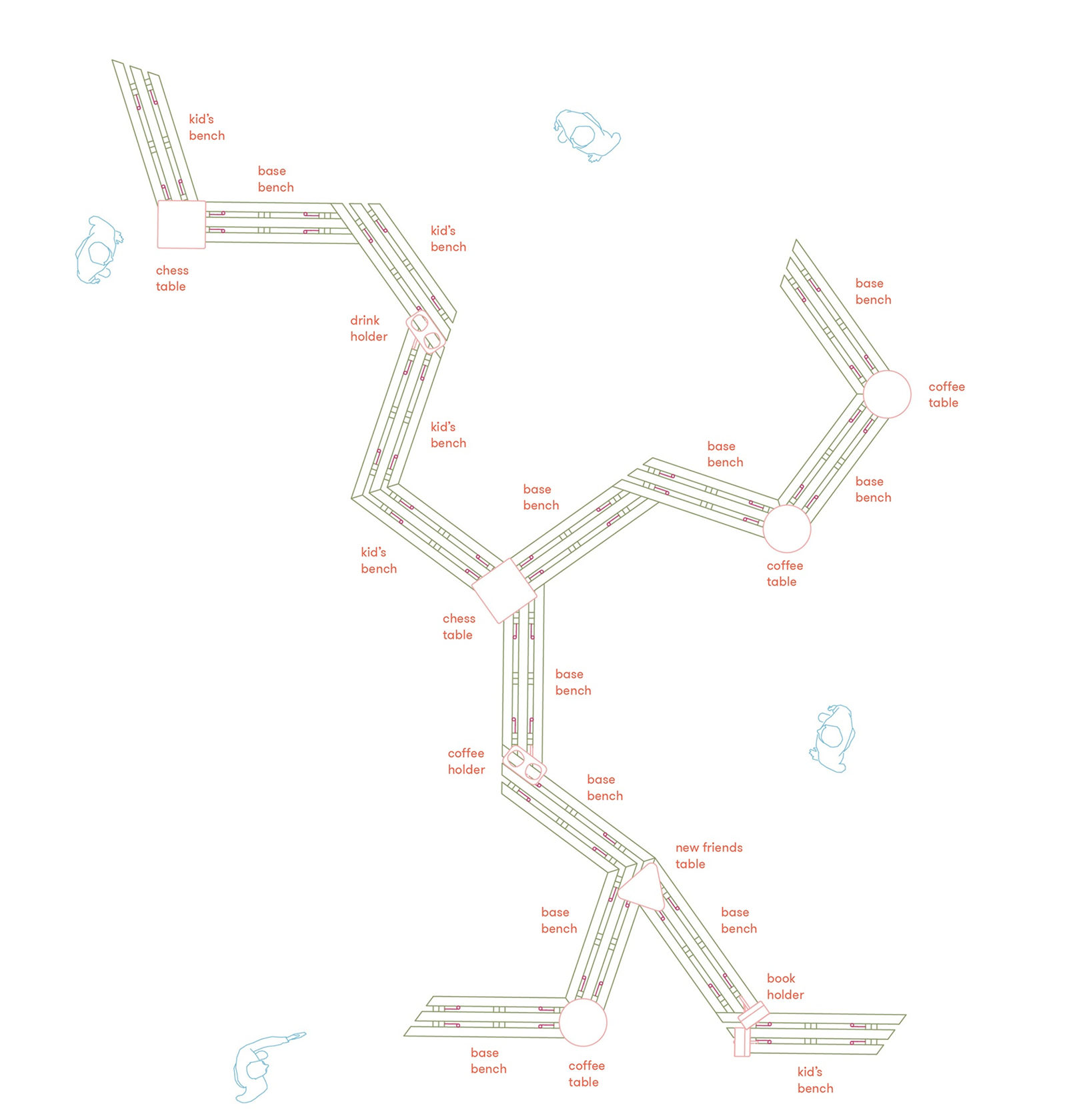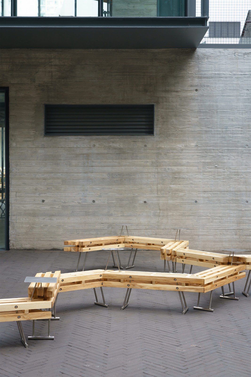 Benches are very mundane objects in HK public spaces but they contribute so much to the culture and communities of Hong Kong. From dai pai dong wood benches in the old days to a common bench in a contemporary park in Hong Kong, benches provide a social space for resting, chatting, playing or even dining. While benches could have different forms and functions as stated above, “Branching Benches” tries to reinterpret the benches that could cater to many different community scenarios through a highly mobilizable and modular system. It can change its layout and forms based on where it is placed in Oi! and what is needed based on the different programs or events.