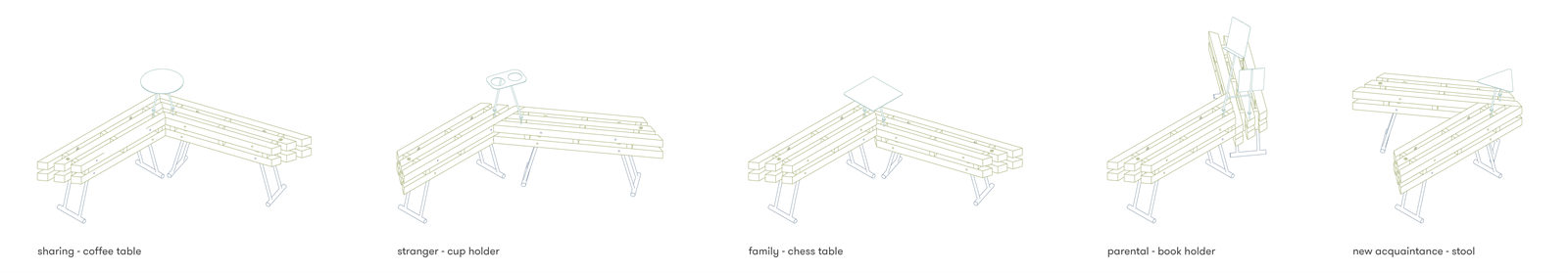The benches can change its layout and forms based on where it is placed and what is needed based on the different programs or events. ? Jimmy HO