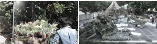 ▼裝置、花箱、坐凳三種組合高低錯(cuò)落,相互映襯