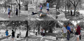 我們發(fā)現(xiàn)場地內(nèi)樹木長勢良好,但由于濃蔭遮蔽導致地表植被無法充分吸收陽光,因此常年黃土裸露。場地未經(jīng)過任何人工設(shè)計,僅有一條被踩出來的小路被鋪上簡單的磚石,從西側(cè)學校斜穿整個公園,連接東南側(cè)住區(qū)入口。