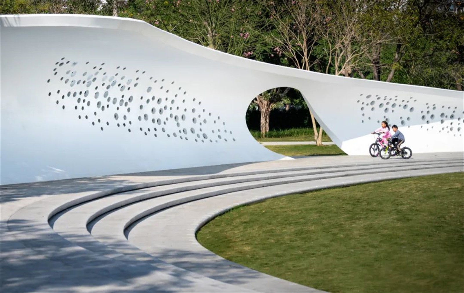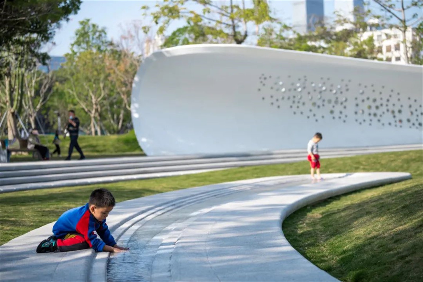 Encourage on-site exploration through design and deliverlow-carbon sustainable value. The park has restored 15000 of broken surface habitat, allowing the bareand hardened land to breathe freely again. The 263 trees retained and 192flowering trees replanted can absorb 7.9 tons of carbon dioxide every year.