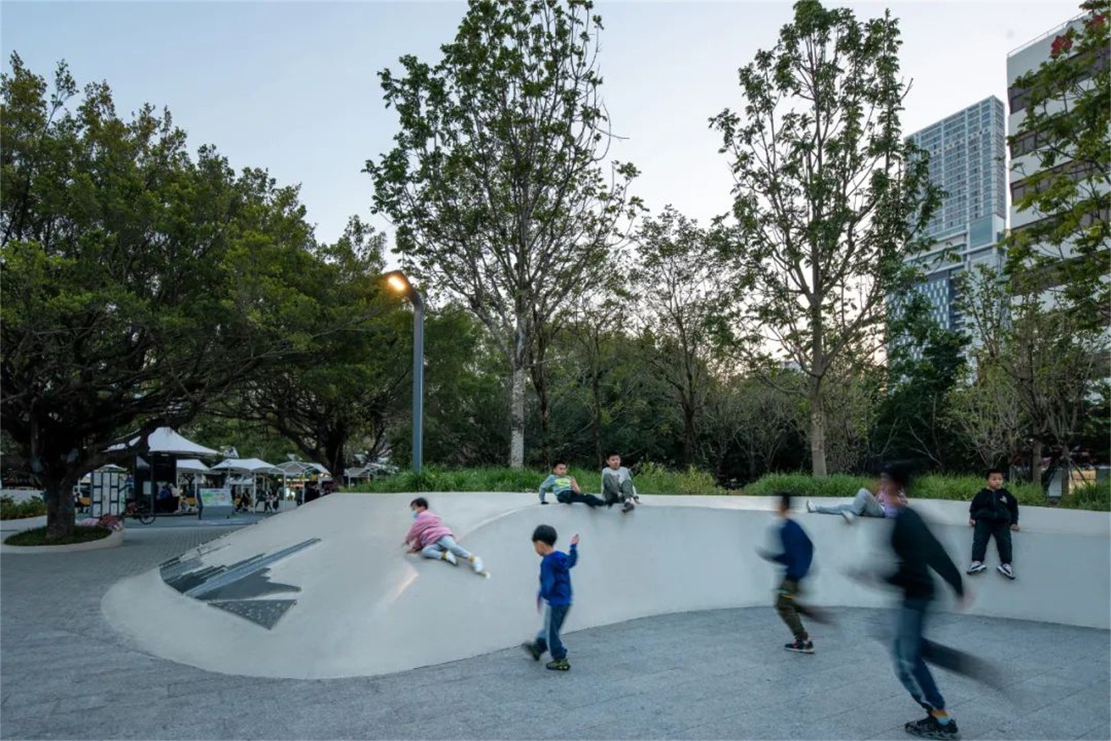 The project will reuse recycled materials forvarious facilities to effectively contribute urban carbon emission reduction.Underground Sponge City measures and rain gardens on-site provide the park witha rainwater recycling system. At the same time, 271 original 7 banyan trees and14 other species of trees that have grown for more than 40 years are retainedin the park. Through plant matching, the microclimate environment is improved,and residents are provided with a safe space against disasters such as epidemicdiseases, earthquakes and rainstorms, reshaping an ecological resilient,healthy and vibrant public space.