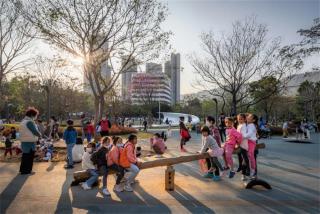 時光草坪公園位于深圳改革開放試驗地——蛇口,場地原是一個地表裸露、林木雜亂的閑置場地,也是社區(qū)高密度空間下唯一的戶外開放場所。它的重建使居民文化生活得到顯著的提升,并重新連接了社區(qū)居民的交往,大大激發(fā)了社區(qū)活力。