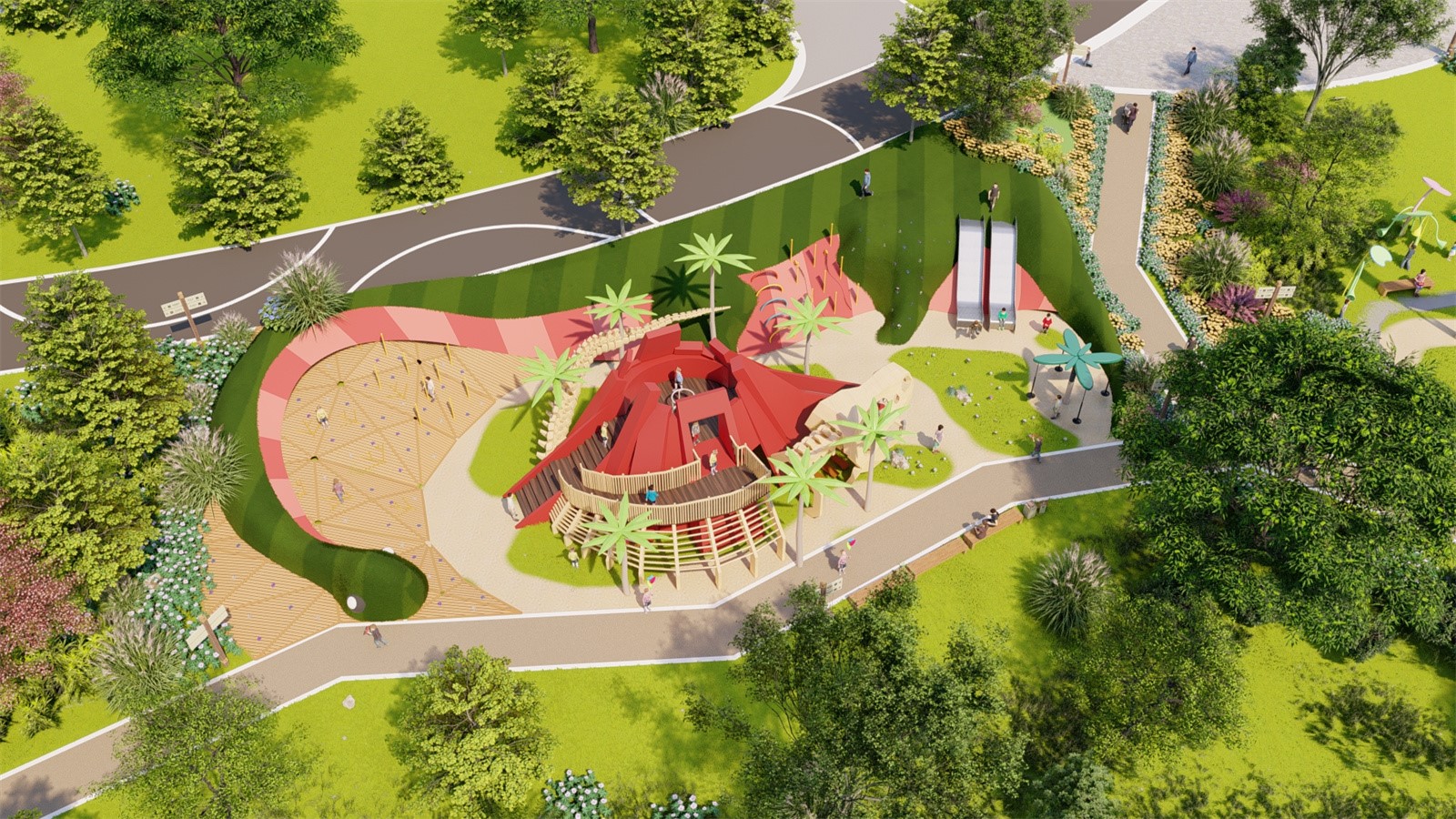 其中戶外無動力親子游樂區(qū)域是立本重點打造區(qū)域,以恐龍為主題,由快樂島、翼龍穿梭、延吉龍、火山巖四大區(qū)域組成。