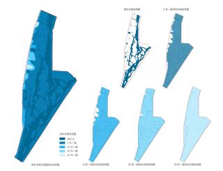 Huangbai River is a mountain stream type river with huge water level difference between flood season and dry season, and the design range is located in the river channel delineated by the water conservancy department. Therefore, the rain and flood factor is the first consideration in the design. It is necessary to fully understand which areas may be submerged during the flood season and which are relatively safe, so as to provide a basis for the overall design and the layout of landscape facilities. According to the hydrological data of each monitoring point measured by the water conservancy department, and the elevation data of the current surveying and mapping topographic map, the flood level inundation range of once in 5 years, once in 10 years, once in 20 years and once in 50 years can be delineated. Although the design elevation has been adjusted compared with the current topography, the overall impact is not large, and the subsequent analysis and layout are based on this basis.