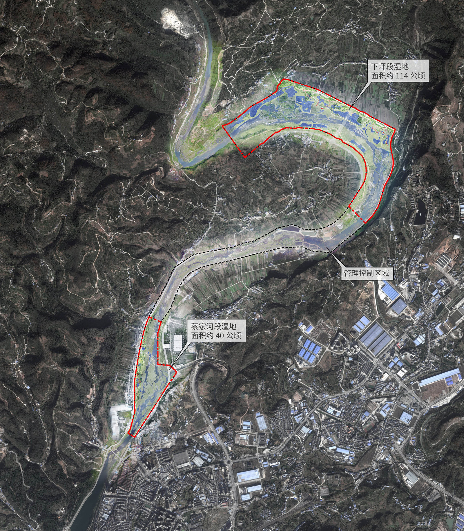 基地位于宜昌市夷陵區(qū)黃柏河沿線,分為兩段,分別位于下坪村和蔡家河村附近河灘,總面積約154公頃,其中水域面積約35公頃。其緊鄰的南蔡下片區(qū)是未來(lái)宜昌城市向北拓展的核心,城市與河流關(guān)系密切。