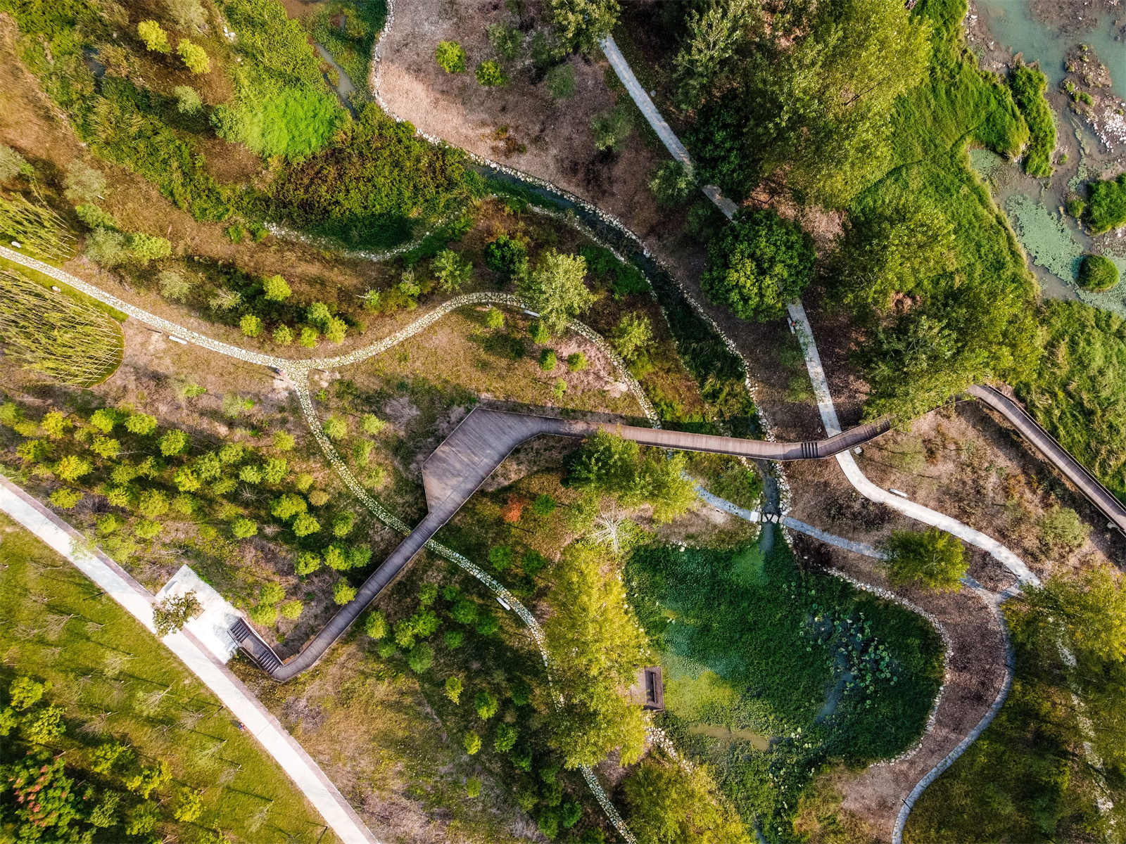 The project is essentially an ecological restoration project, and its primary purpose is to protect and restore the floodplain wetlands of the Huangbai River flowing through the urban area of Yichang, so that it can better play its ecological function. Therefore, at the beginning of the design, the principle of putting ecological restoration first and "park" attributes second. That is to reduce the human damage and disturbance to the wetland, restore the vegetation, and create a suitable habitat for all kinds of wetland organisms, especially birds, so that they can live and reproduce here. The second is the needs of people, that is, to increase park facilities on this basis to meet the needs of public activities.