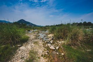During the dry season, the riverbed is exposed and the meadow vegetation is lush. ? 張騫
