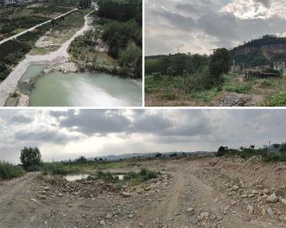 ▼場(chǎng)地現(xiàn)狀遍布采石挖沙痕跡和農(nóng)田菜地,極易造成水土流失和面源污染