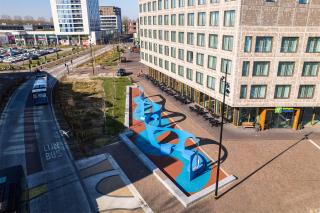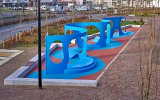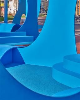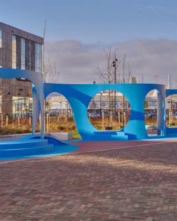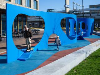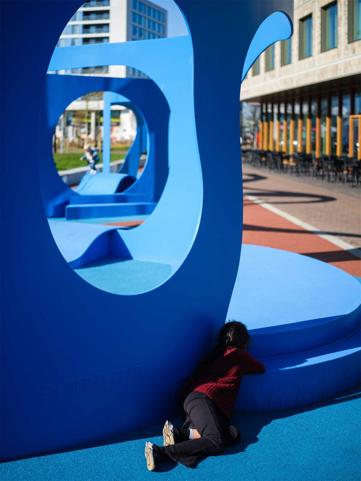 2022 starts with a bang! And a blue bang at that. The multi-functional art playground Baltimore Bend, designed by Arttenders and Studio Spass, has been finalized and is shining in all its brilliance in the Baltimore Square. The work is commissioned by the municipality of Almere, and has been festively opened today by alderwoman Hilde van Garderen.