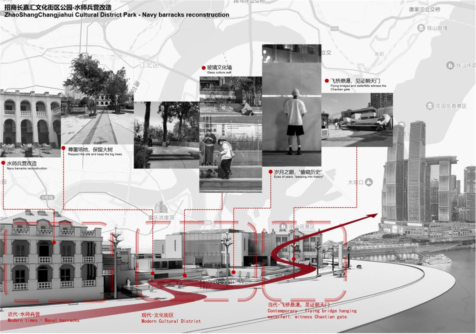 從百年滄桑的“時光印跡”里我們洞察城市的過去,以文化作啟迪,希望“傳承南濱路的歷史記憶,打造開放共享的城市空間”,展現(xiàn)重慶一個新的城市記憶點,更新為城市界面的文化展示櫥窗。