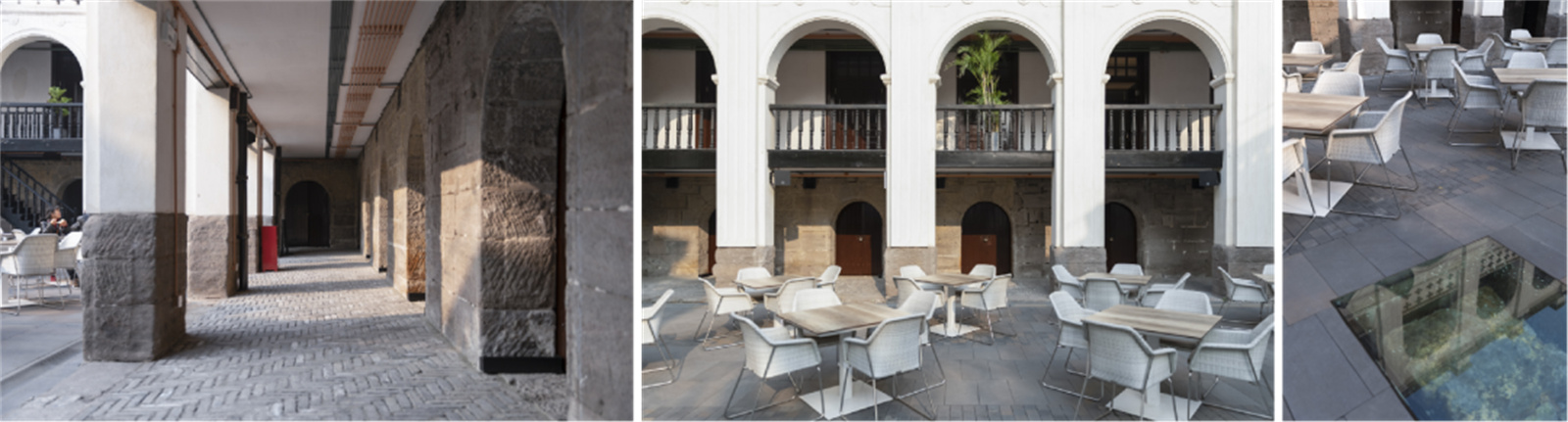 The entrance retains the original steps, and a glass bridge is arranged above. It restores the vicissitudes of historical relics and makes people more close to the cultural relics, and guides the flow of people directly into the inner courtyard.