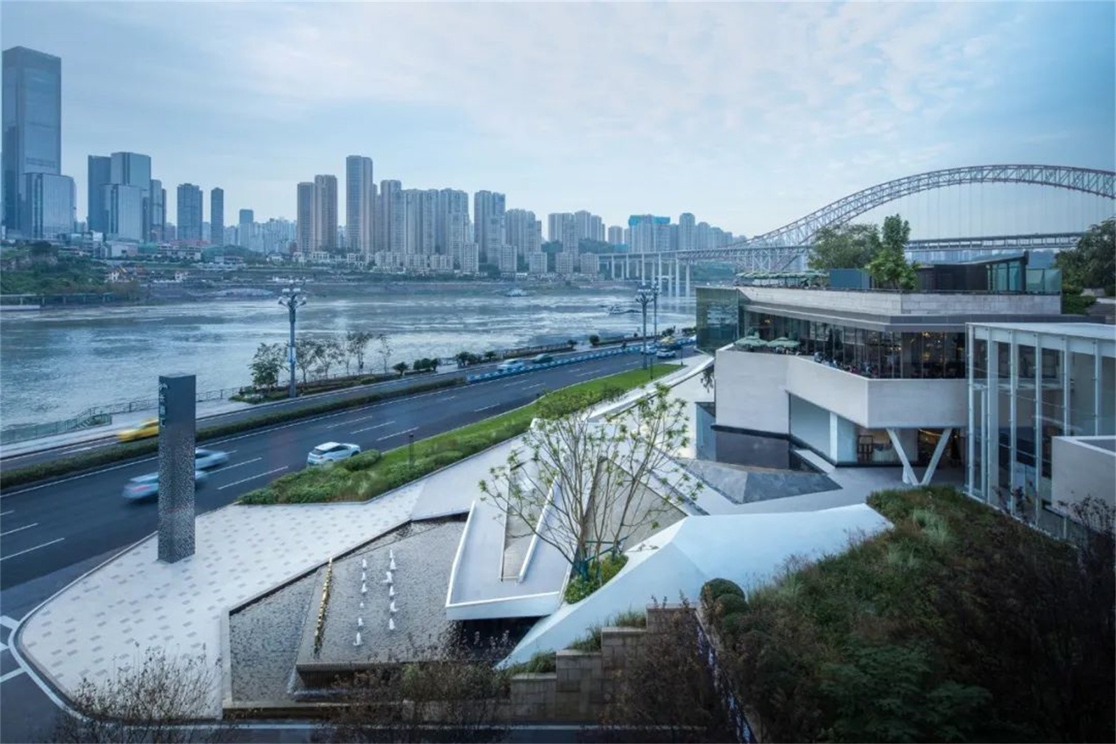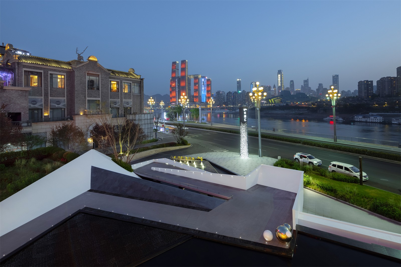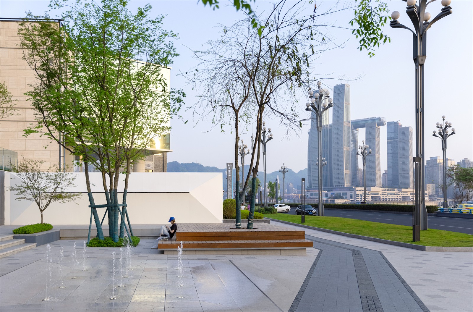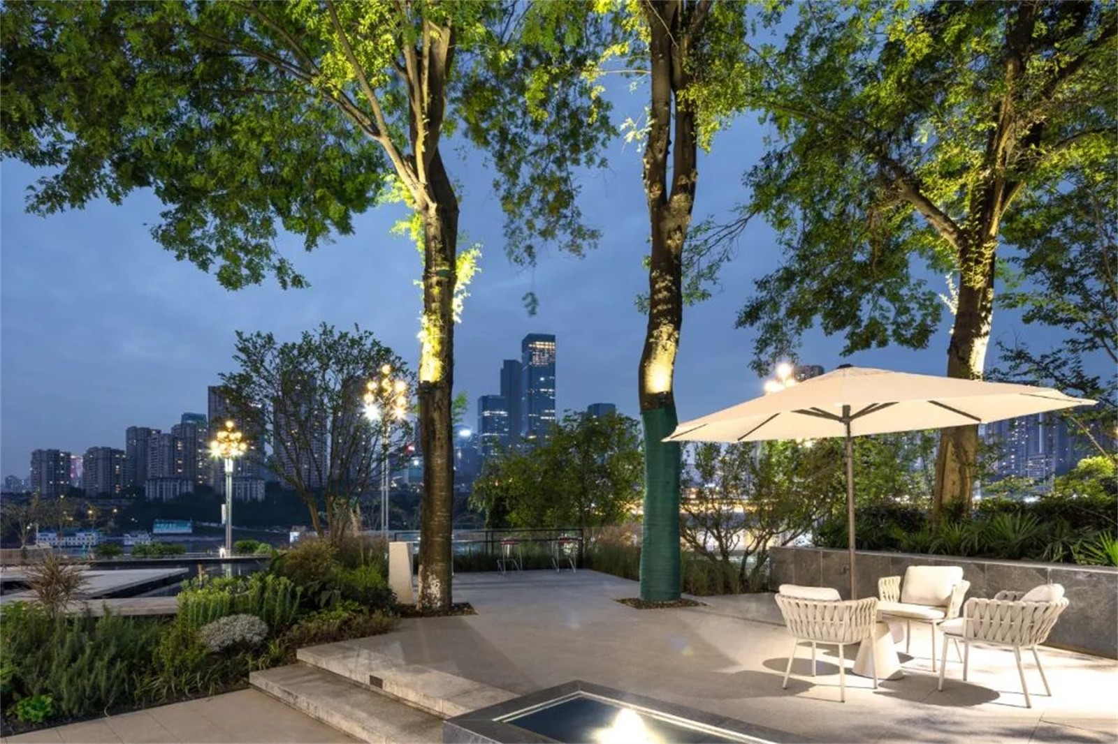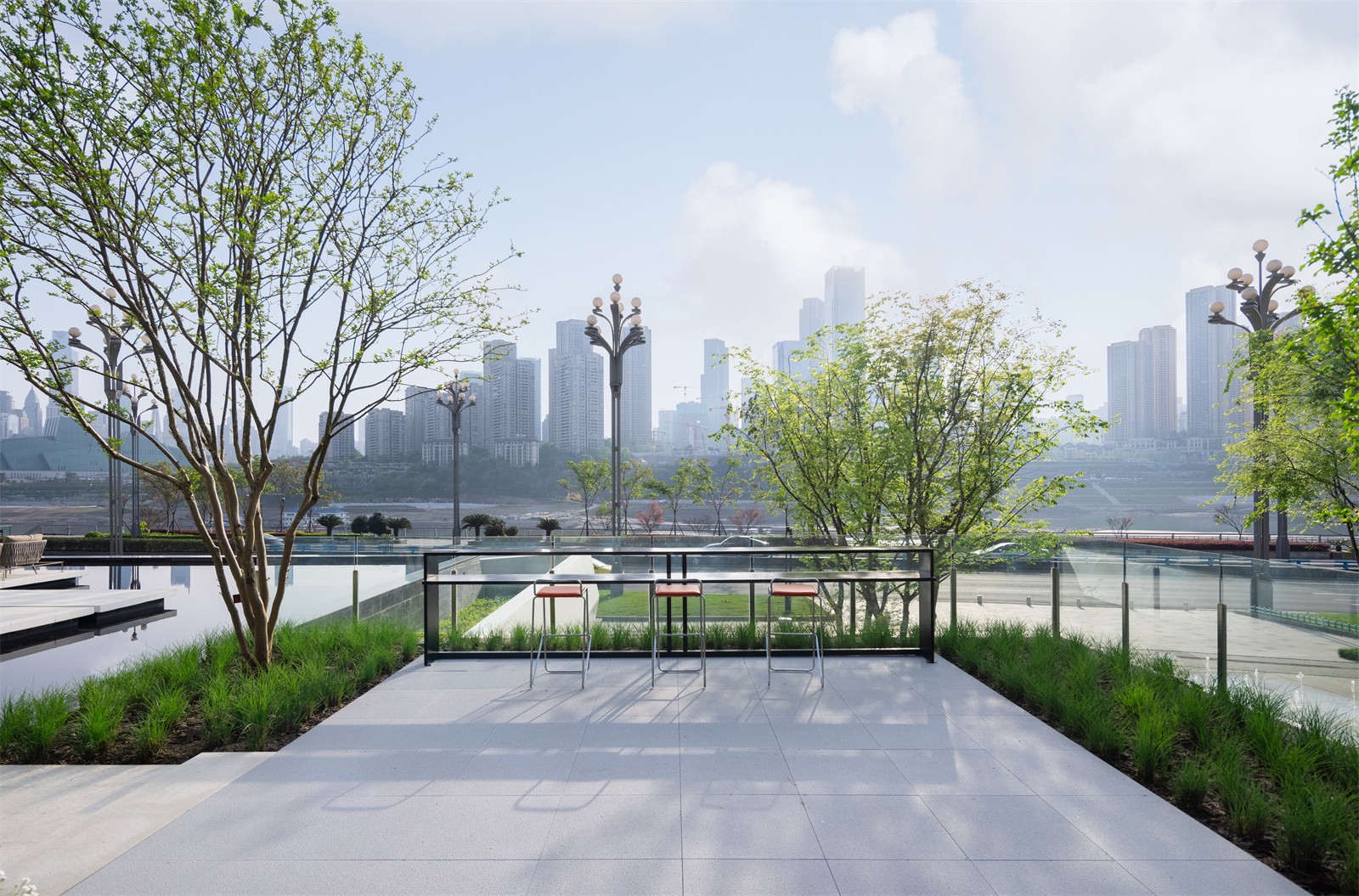 From the naval barracks, the community pocket garden to the show area front space, historical narrative, hardcover and ingenious.The front space uses view borrowing, cleverly bringing the Chongqing landmark building Raffles City Chongqing and Chongqing Grand Theater into the field of vision, forming a cross-strait scenery linkage.
