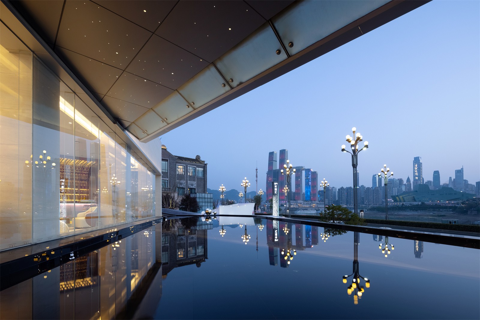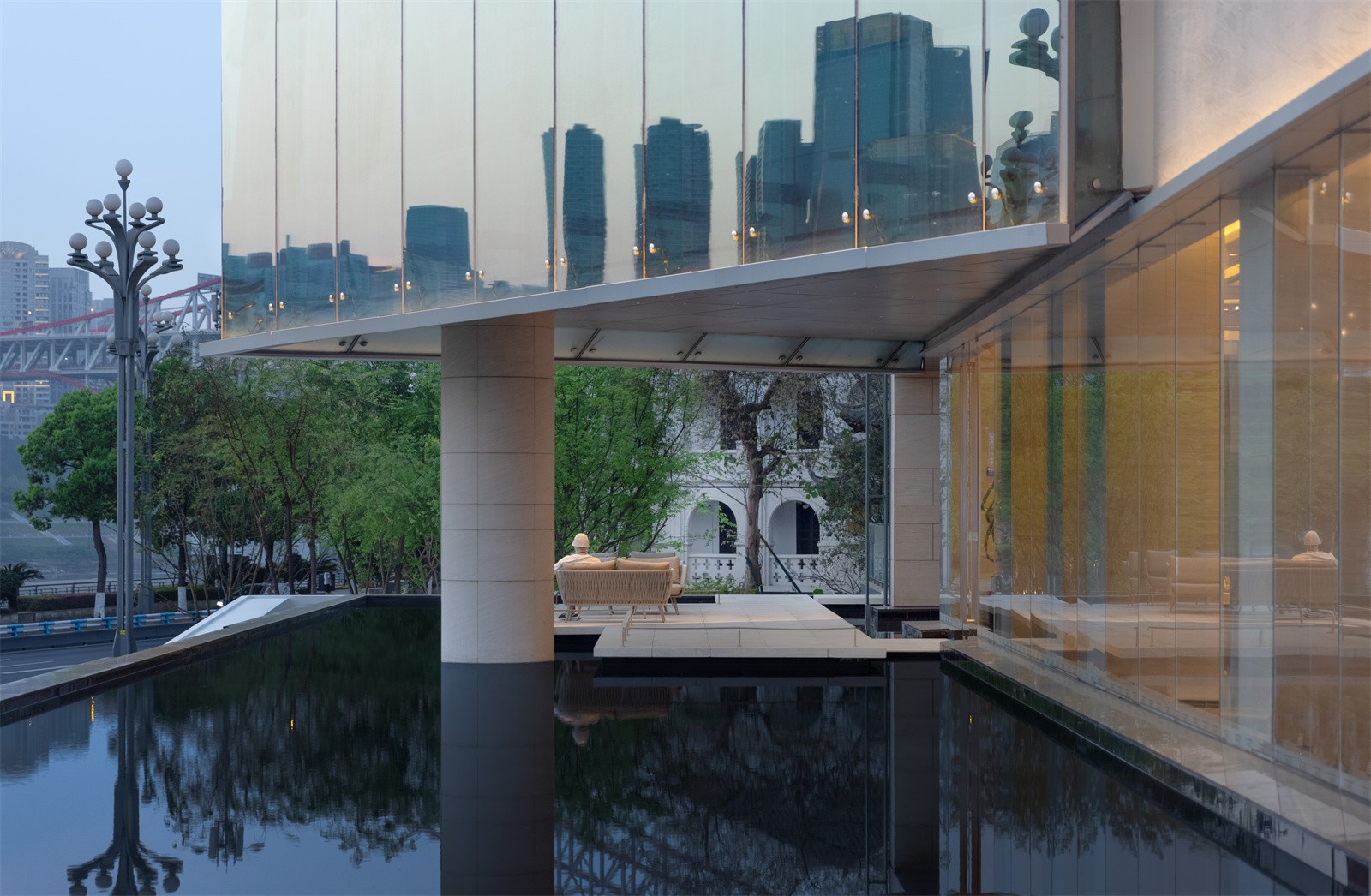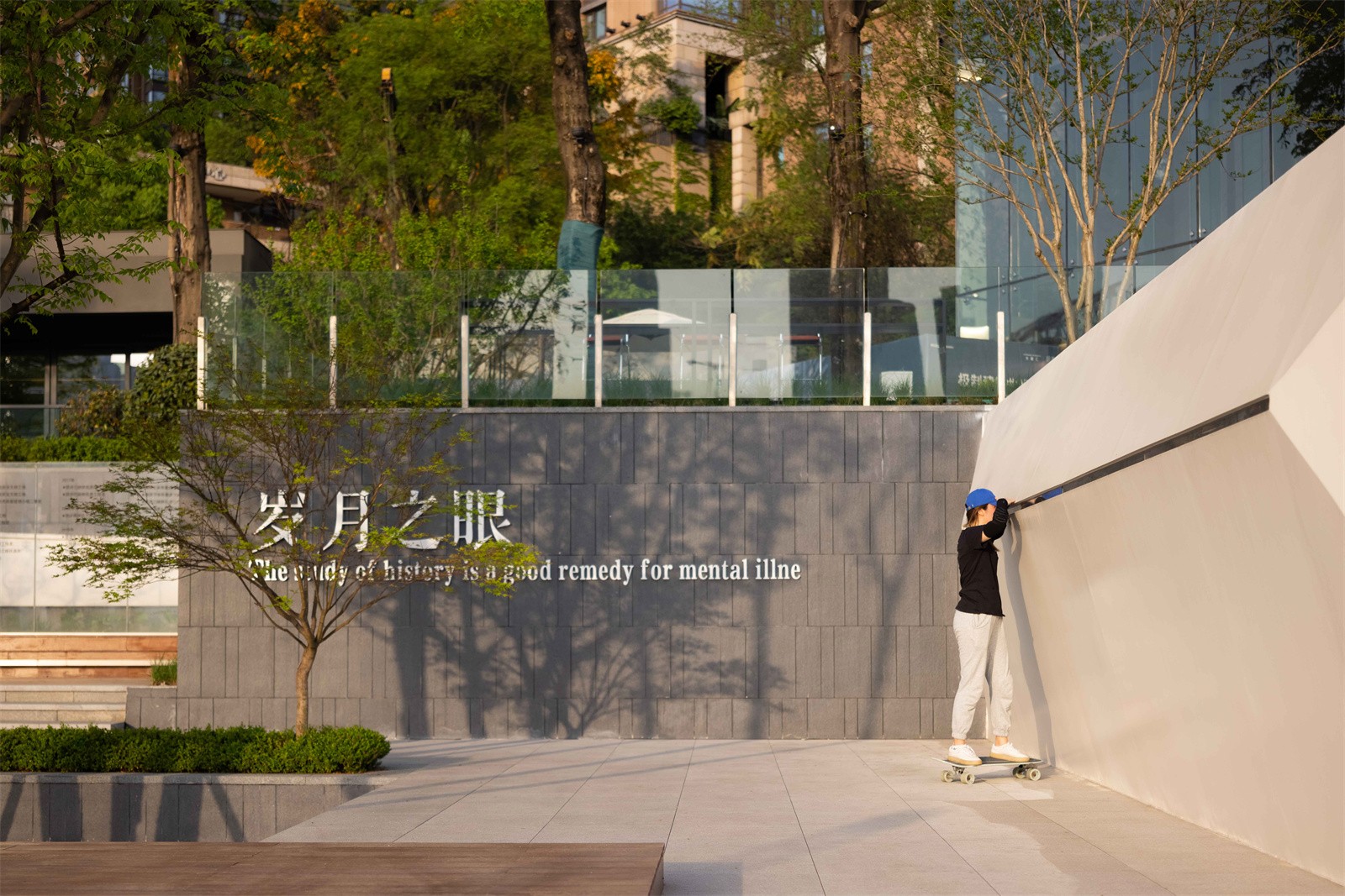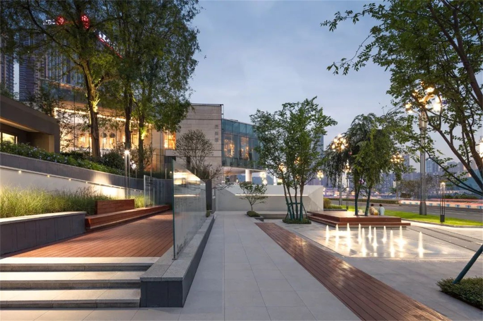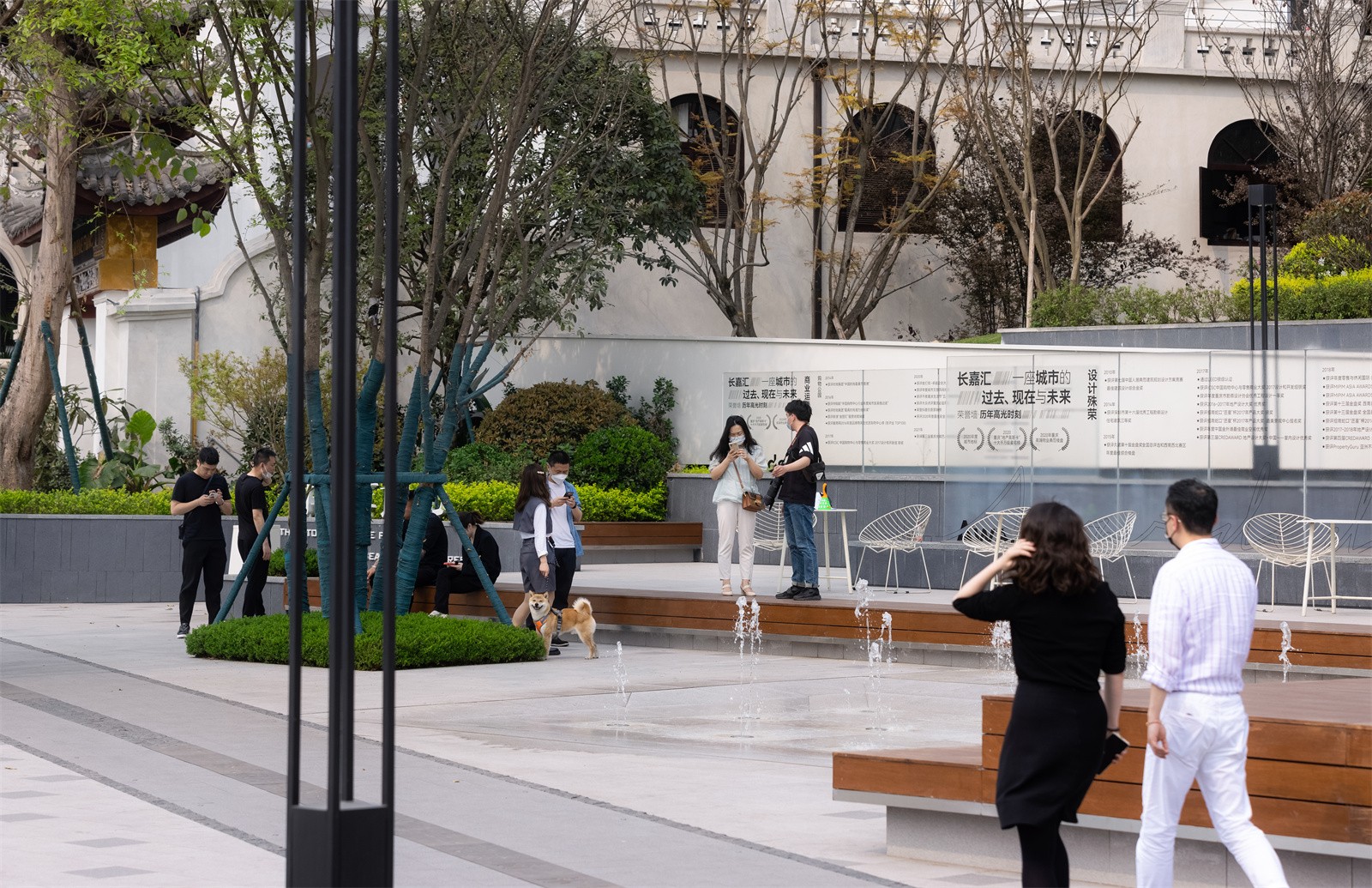 From the naval barracks, the community pocket garden to the show area front space, historical narrative, hardcover and ingenious.The front space uses view borrowing, cleverly bringing the Chongqing landmark building Raffles City Chongqing and Chongqing Grand Theater into the field of vision, forming a cross-strait scenery linkage.