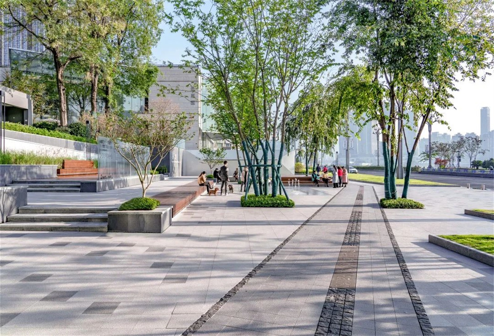 In order to increase the sense of history of the site, the main material of the pavement is mainly Chongqing bluestone.Through the contrast of bluestone texture and texture effect, combined with strip stones, it creates a primitive and natural impression.