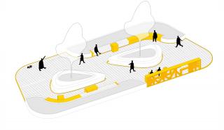 顏色上我們大膽選擇了與建筑完全不同的亮黃色,讓景觀設(shè)施更加出挑,增強它們的“裝配式”的感覺,表達它們不是建筑的一部分。同時,這種顏色也讓每一個小空間更加輕快、溫暖和令人愉悅,在冷酷的建筑氛圍中形成了一個個的避風(fēng)港(Escape)。