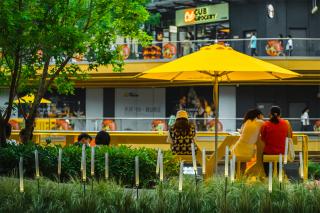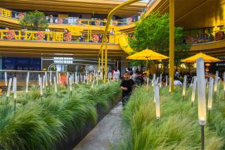 我們面臨三個主要的問題:一、戶外空間留不住人;二、缺乏打卡的節(jié)點;三、要趕在年底完成改造。這幾個要求其實呼應(yīng)了一般商業(yè)區(qū)存量改造面臨的問題:要吸引人來消費、要盡量快改造完從而減小對運營的影響。