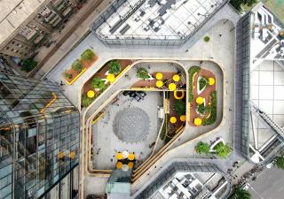 The finished building is designed with extremely streamlined and technological style, with an indisputable sense of oppression. The landscape space designed by the architect emphasizes a grand spatial narrative and coordination with the building. Although large outdoor terraces are created as circulation and activity areas, these areas are large and empty because the perspective is still architectural. These terrace spaces were originally designed to provide sufficient flexibility for business and activities. However, after completion, neither client nor the business owners know how to use them. Obviously, these outdoor terrace spaces lack definition, and there is a missing link between terrace space and operational use - the detailed design of commercial landscape.